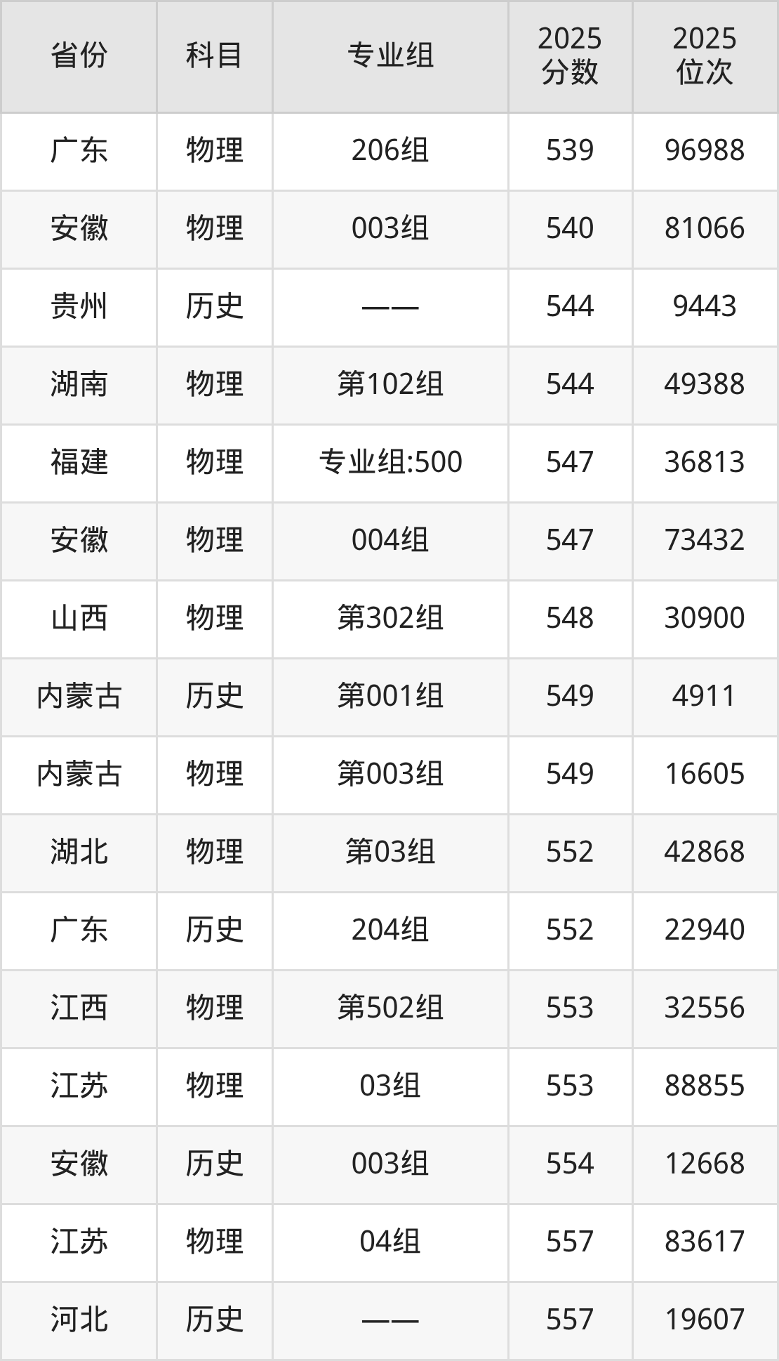 物理类:2025年安徽财经大学省内录取最低分是540分,对应的位次排名是81066名。建议:如果2026年排名超过81066名,那么被该校录取的概率较大。