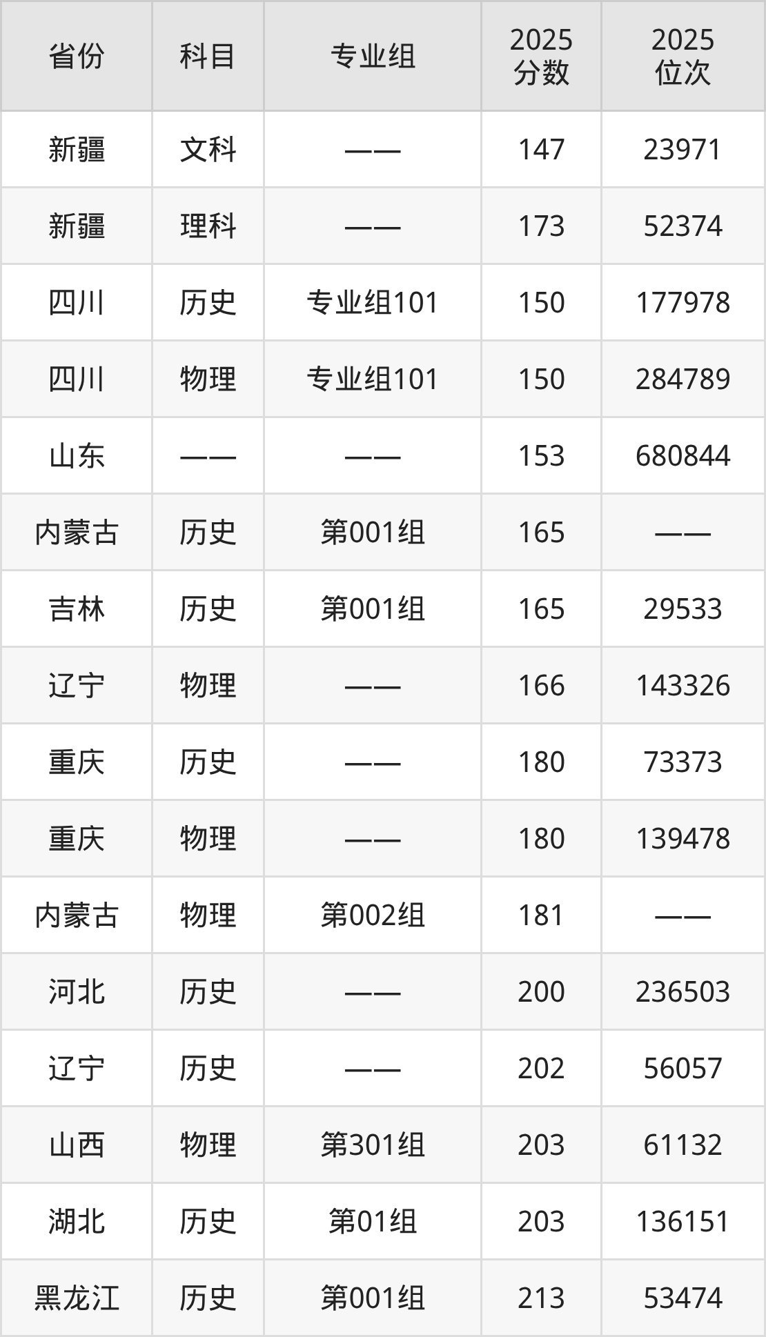 文科:2025年四川国际标榜职业学院录取最低分是147分(新疆),对应的位次排名是23971名。