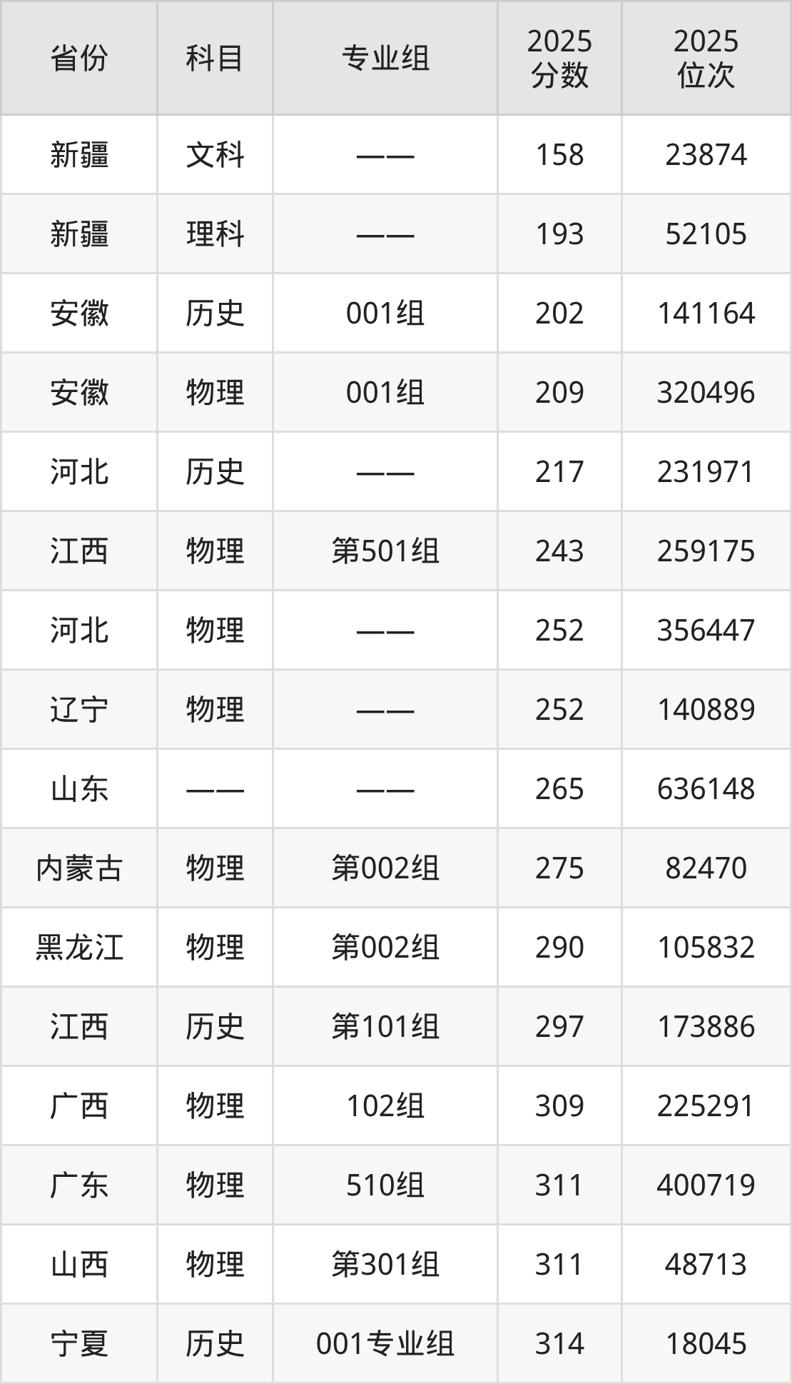 理科:2025年上海济光职业技术学院录取最低分是193分(新疆),对应的位次排名是52105名。