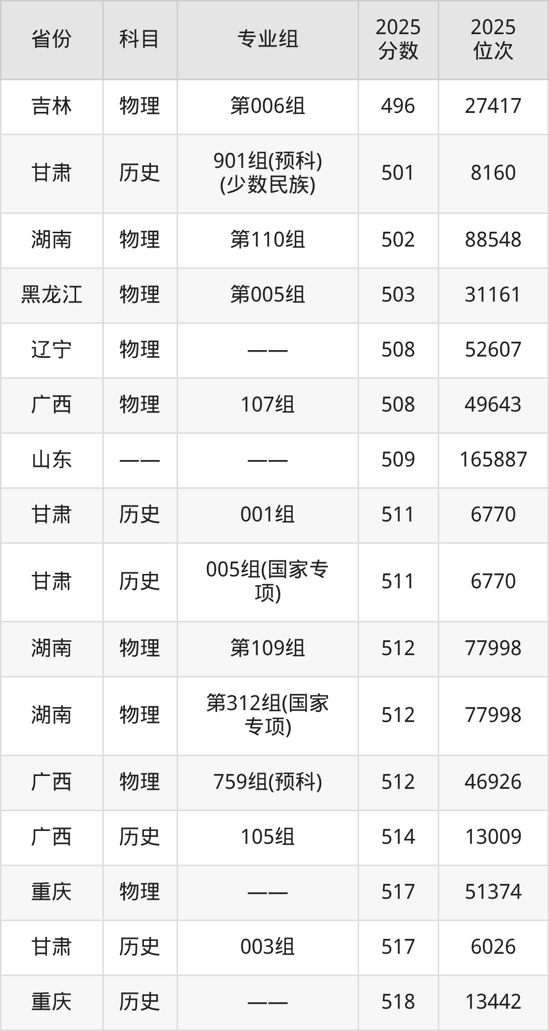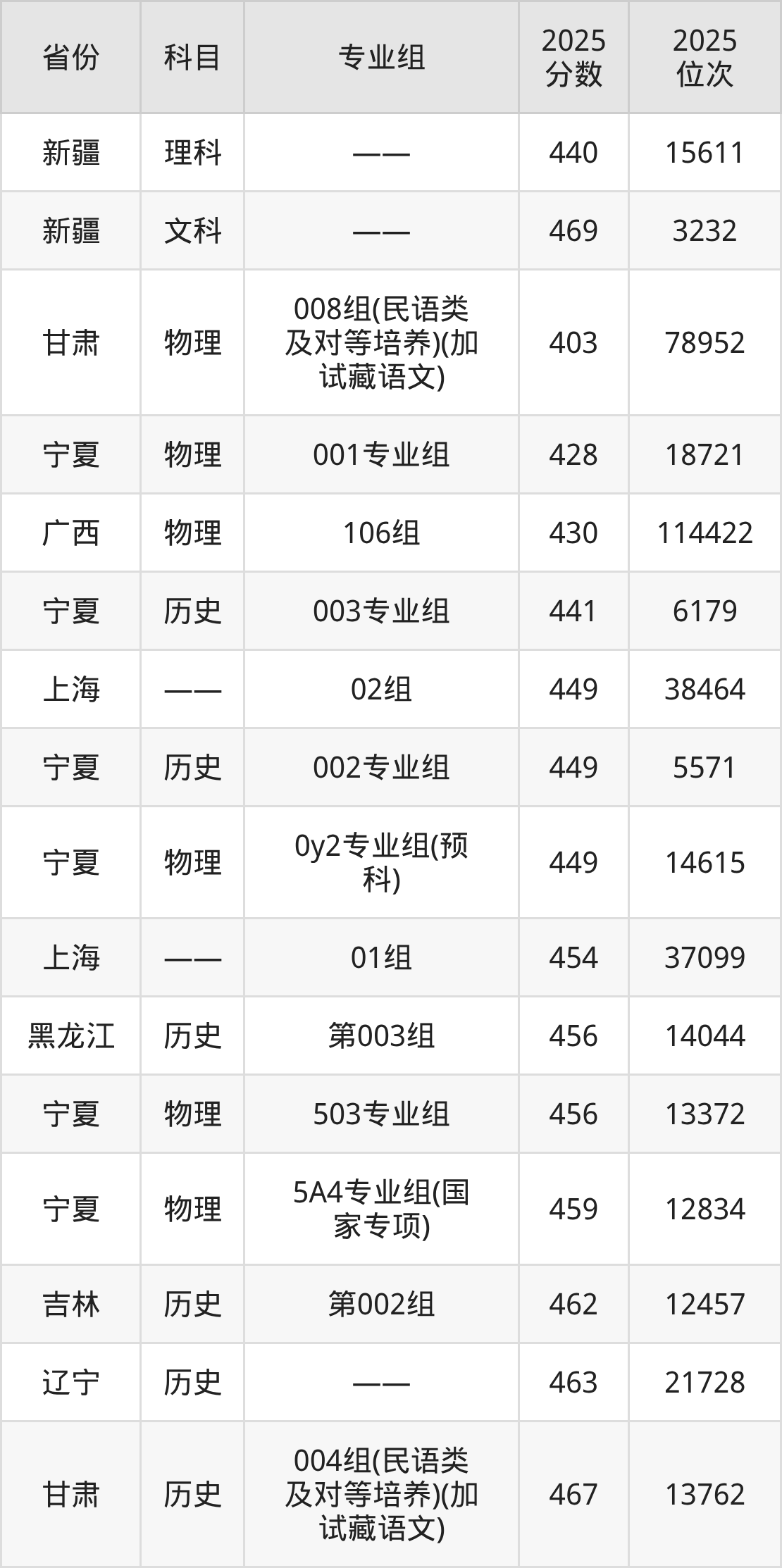 物理类:2025年西南民族大学录取最低分是403分(甘肃),对应的位次排名是78952名。