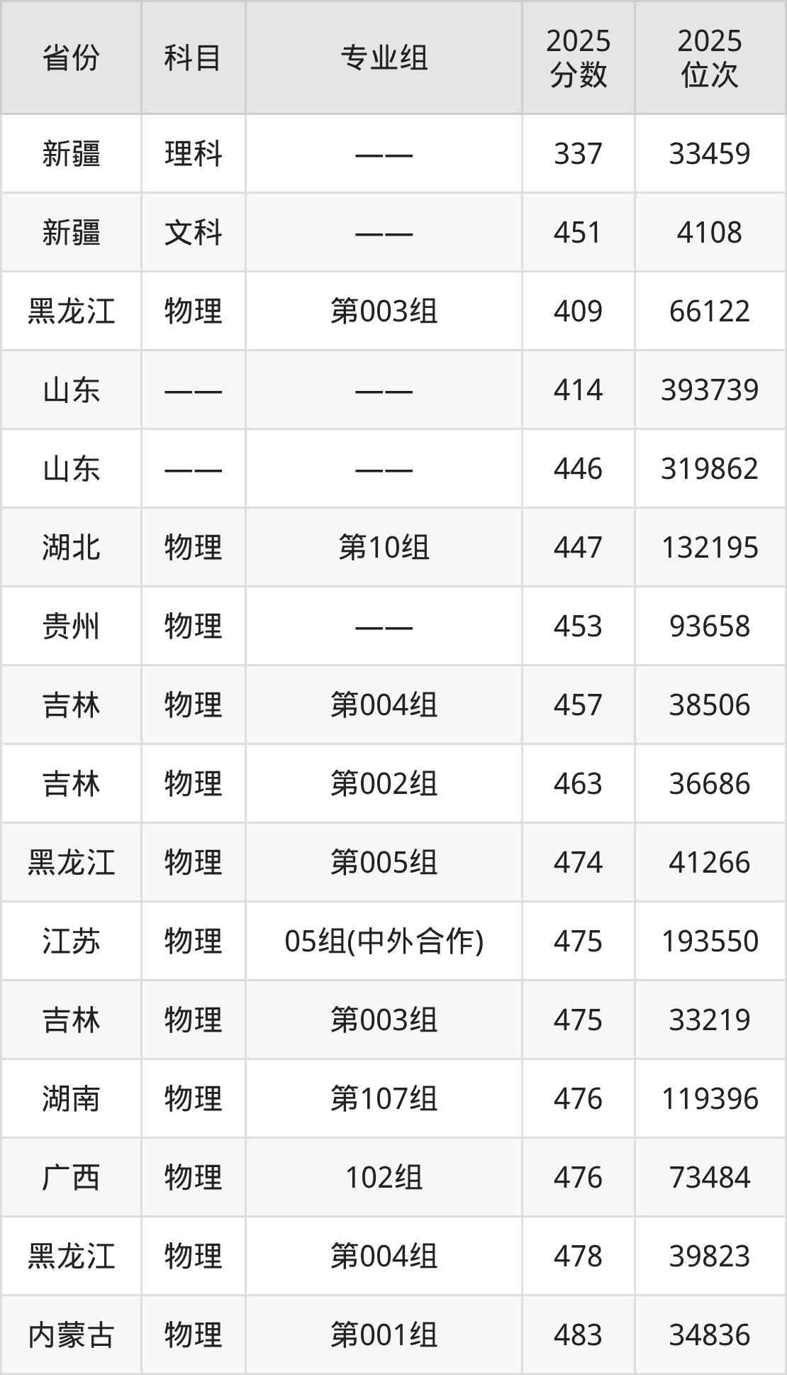 物理类:2025年临沂大学录取最低分是409分(黑龙江),对应的位次排名是66122名。