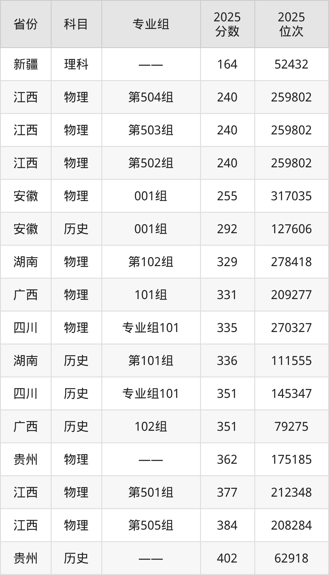 理科:2025年泉州幼儿师范高等专科学校录取最低分是164分(新疆),对应的位次排名是52432名。
