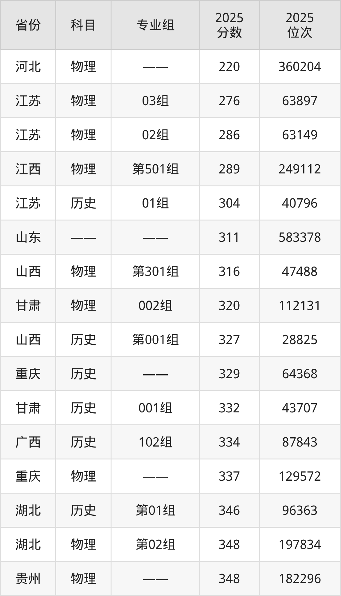 物理类:2025年赣州职业技术学院录取最低分是220分(河北),对应的位次排名是360204名。