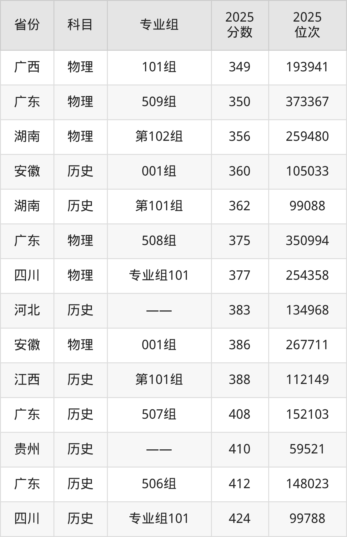 历史类:2025年赣州职业技术学院省内录取最低分是388分,对应的位次排名是112149名。建议:如果2026年排名超过112149名,那么被该校录取的概率较大。