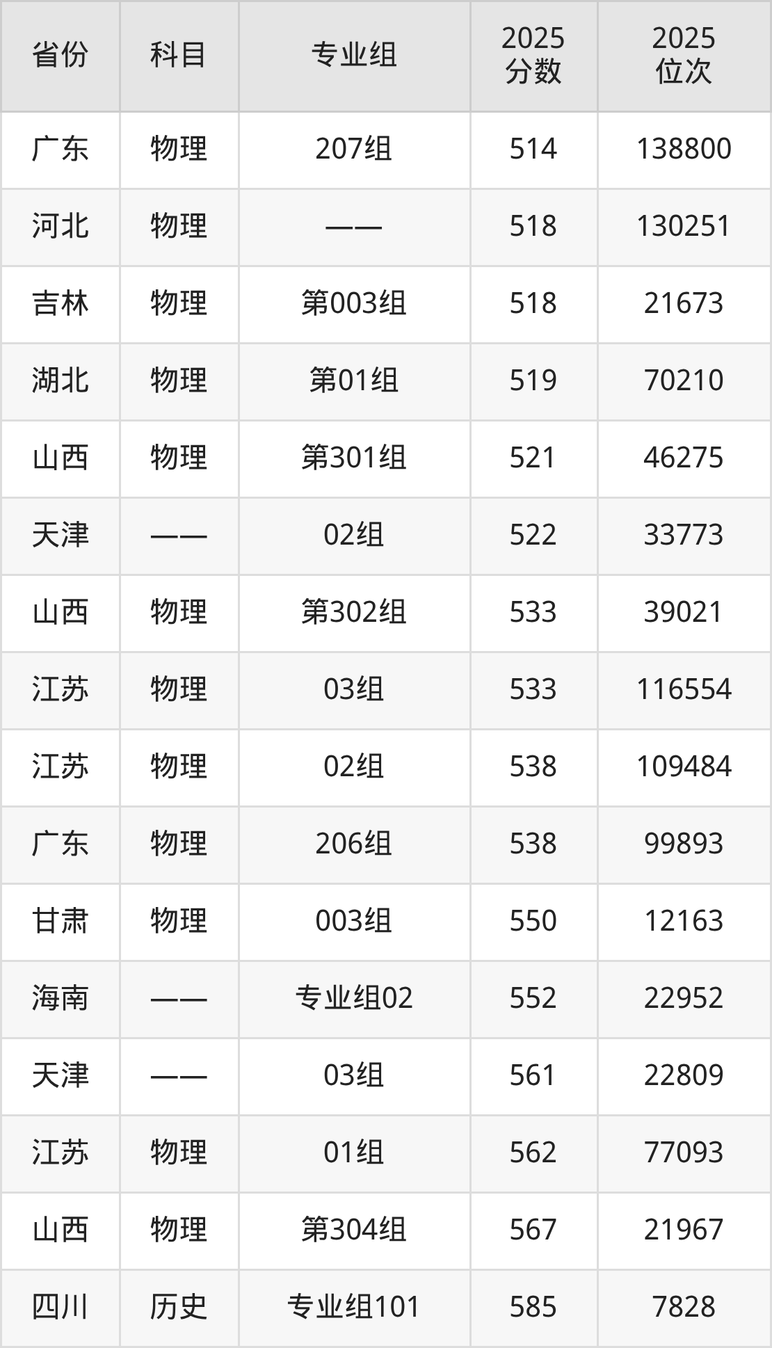 历史类:2025年新疆医科大学录取最低分是585分(四川),对应的位次排名是7828名。
