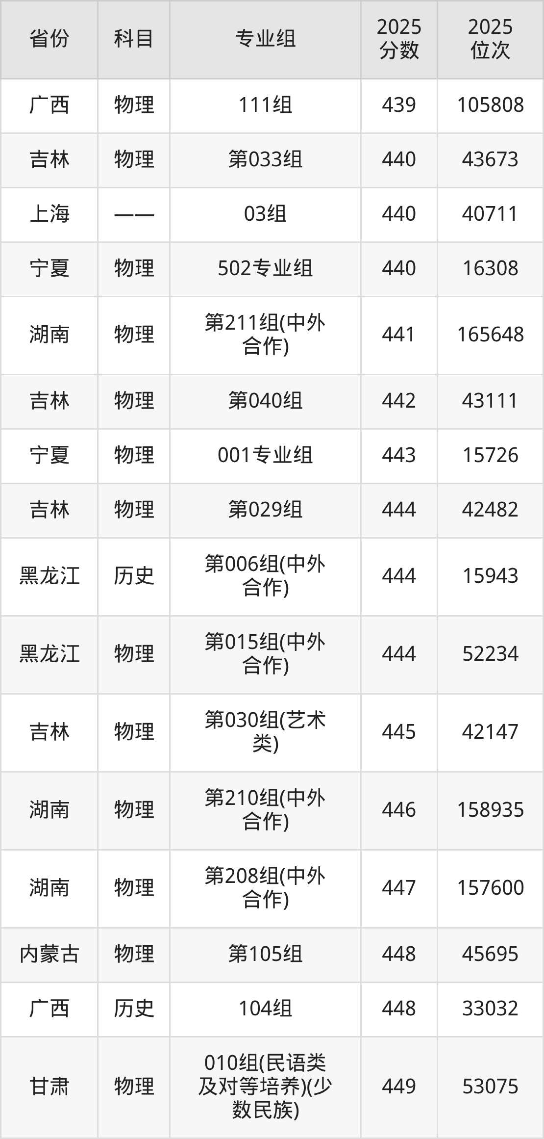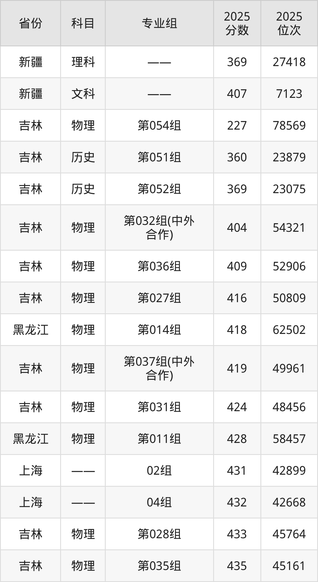 物理类:2025年吉林师范大学录取最低分是418分(黑龙江),对应的位次排名是62502名。