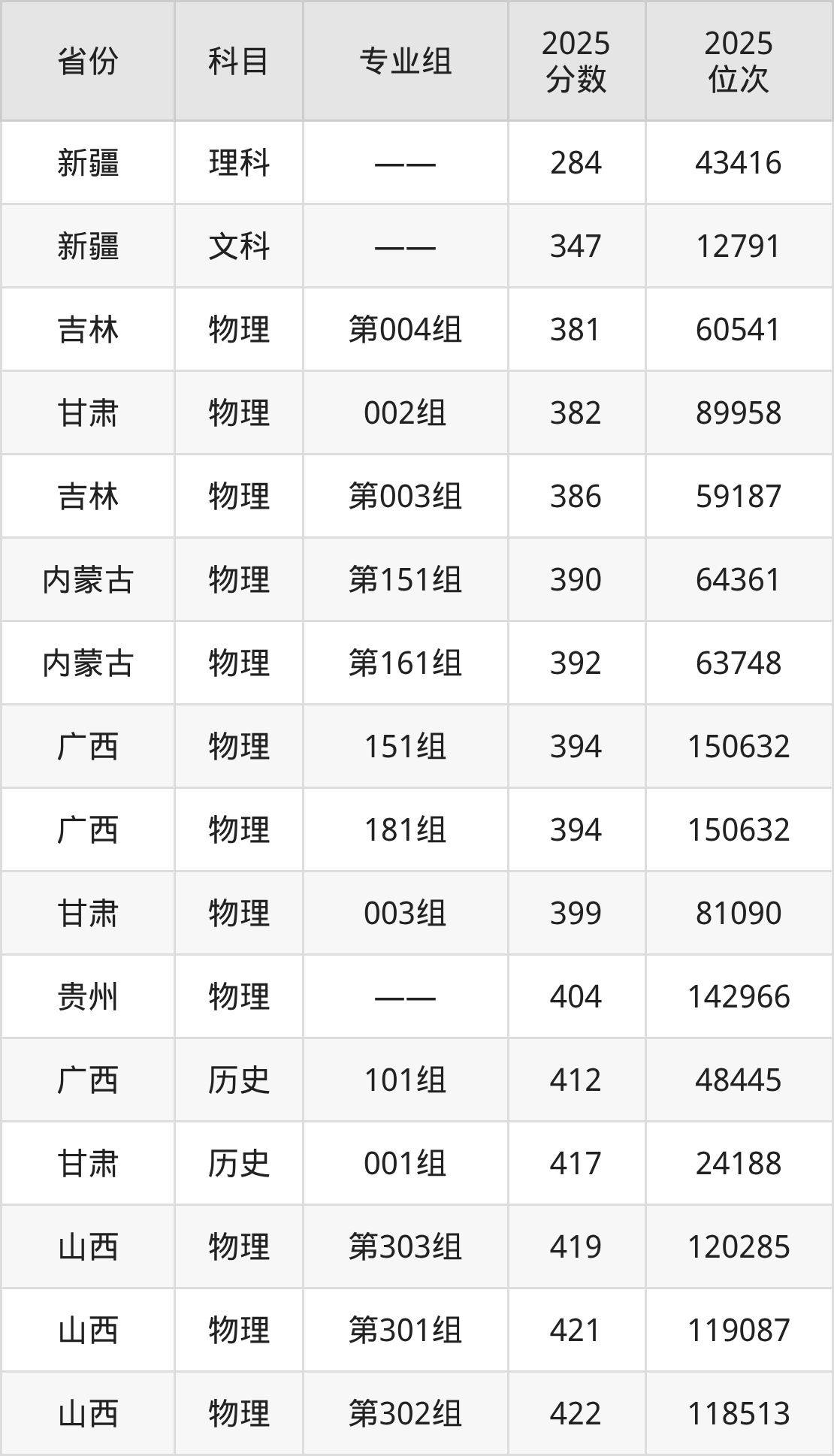 物理类:2025年桂林学院录取最低分是381分(吉林),对应的位次排名是60541名。
