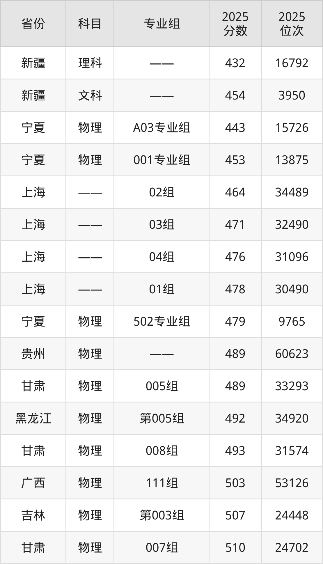 理科:2025年集美大学录取最低分是432分(新疆),对应的位次排名是16792名。