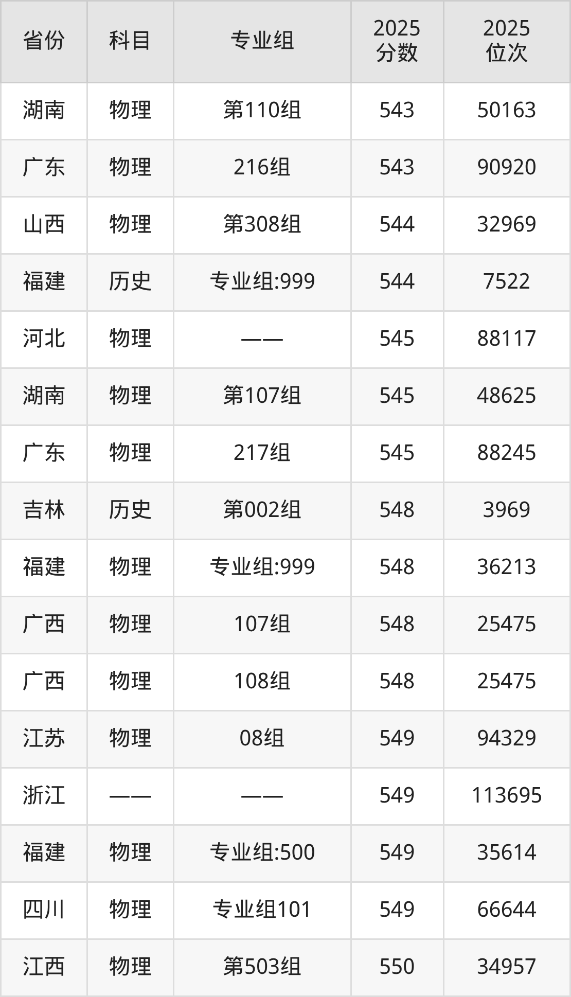 物理类:2025年集美大学省内录取最低分是542分,对应的位次排名是39897名。建议:如果2026年排名超过39897名,那么被该校录取的概率较大。