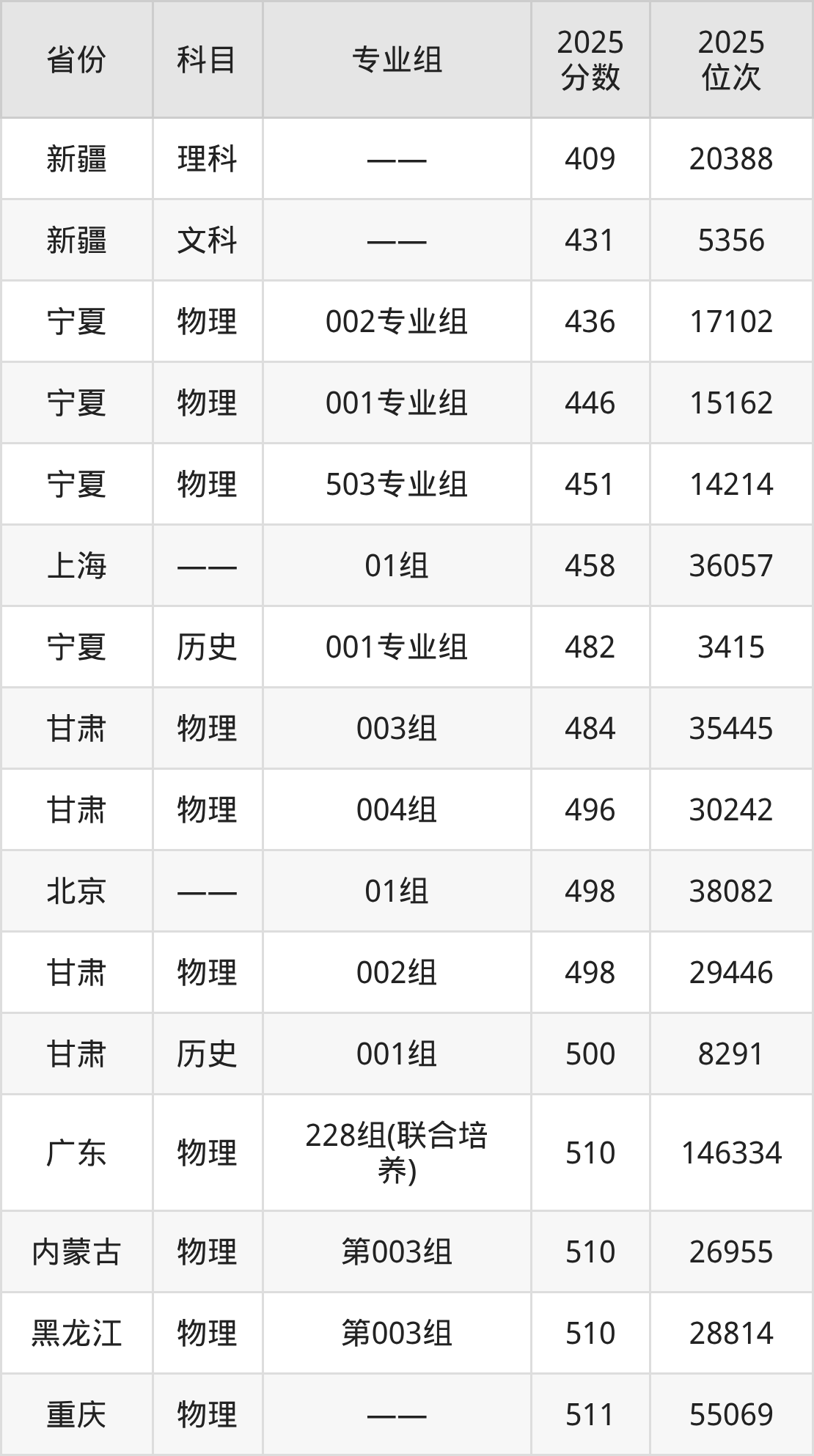 物理类:2025年广东金融学院录取最低分是436分(宁夏),对应的位次排名是17102名。