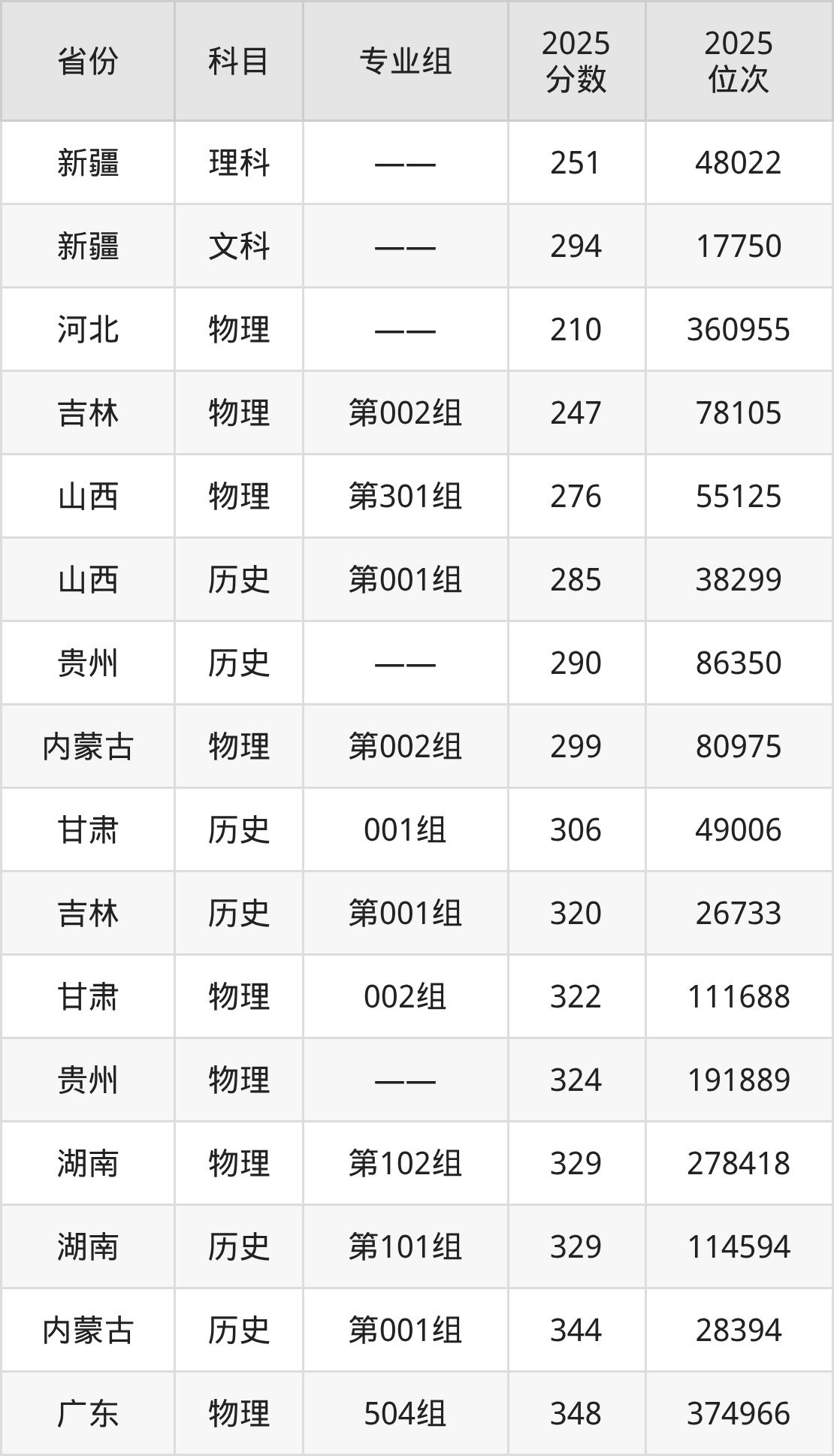 物理类:2025年张家口职业技术学院录取最低分是247分(吉林),对应的位次排名是78105名。