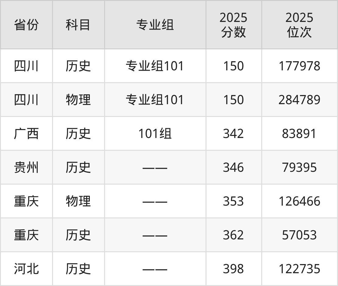 历史类:2025年川南幼儿师范高等专科学校录取最低分是342分(广西),对应的位次排名是83891名。