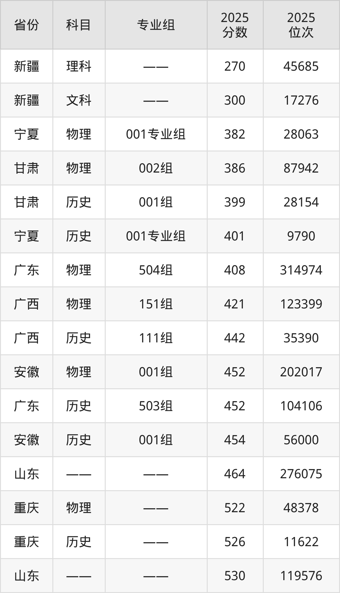 理科:2025年陕西警察学院录取最低分是270分(新疆),对应的位次排名是45685名。