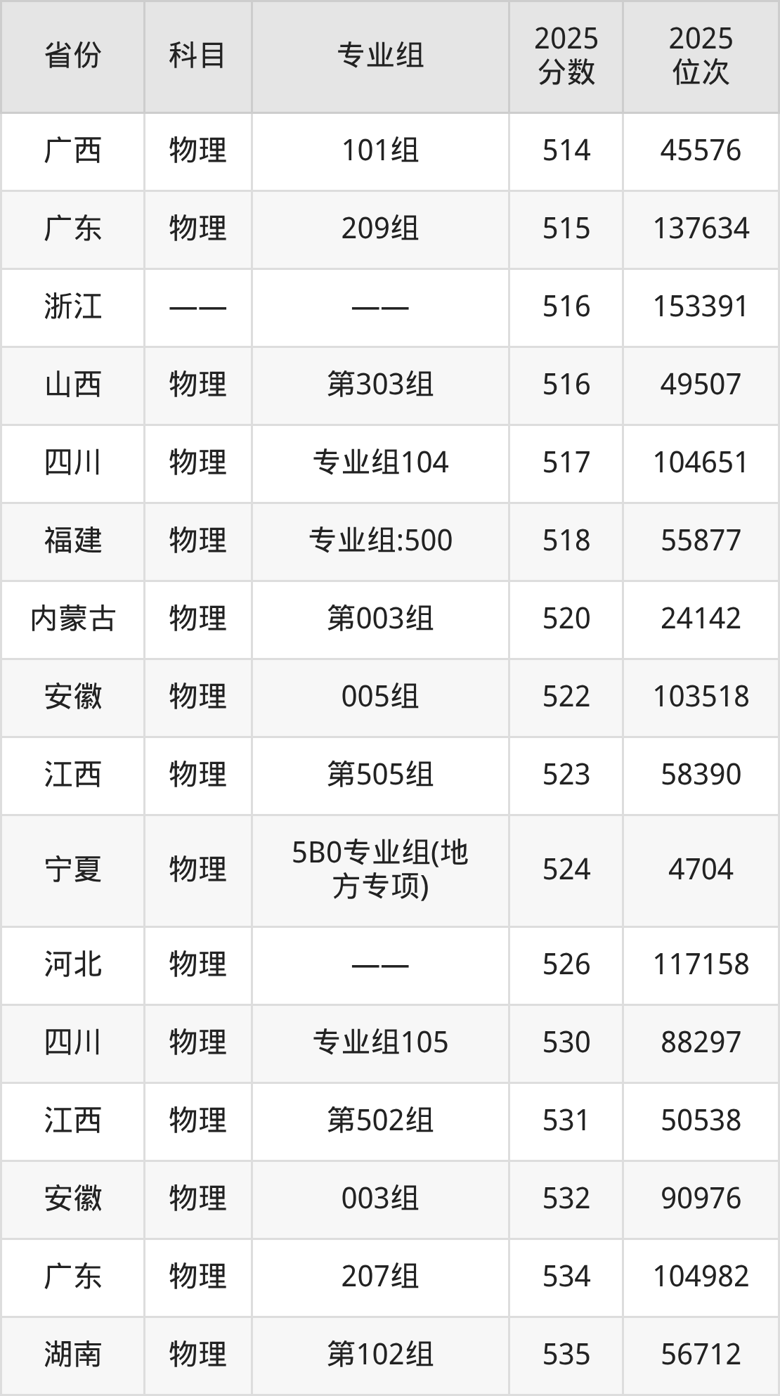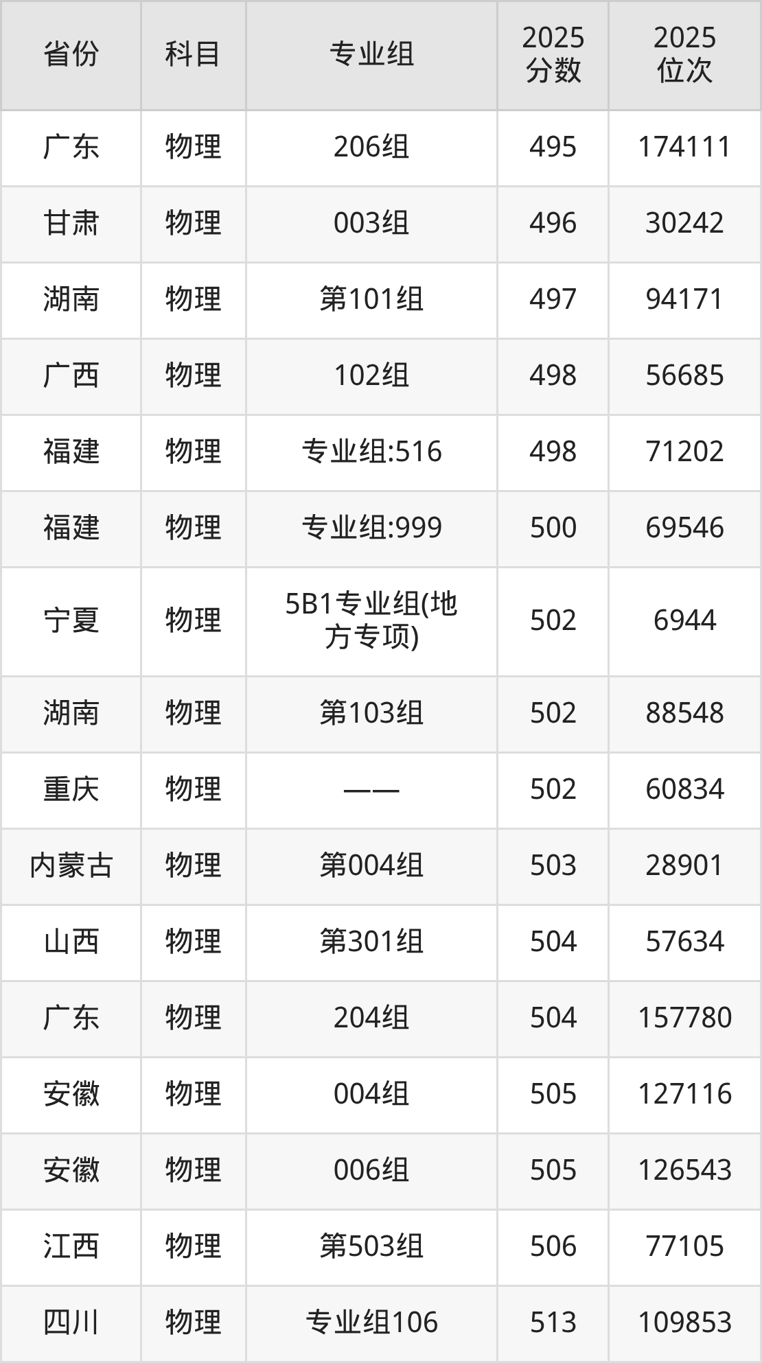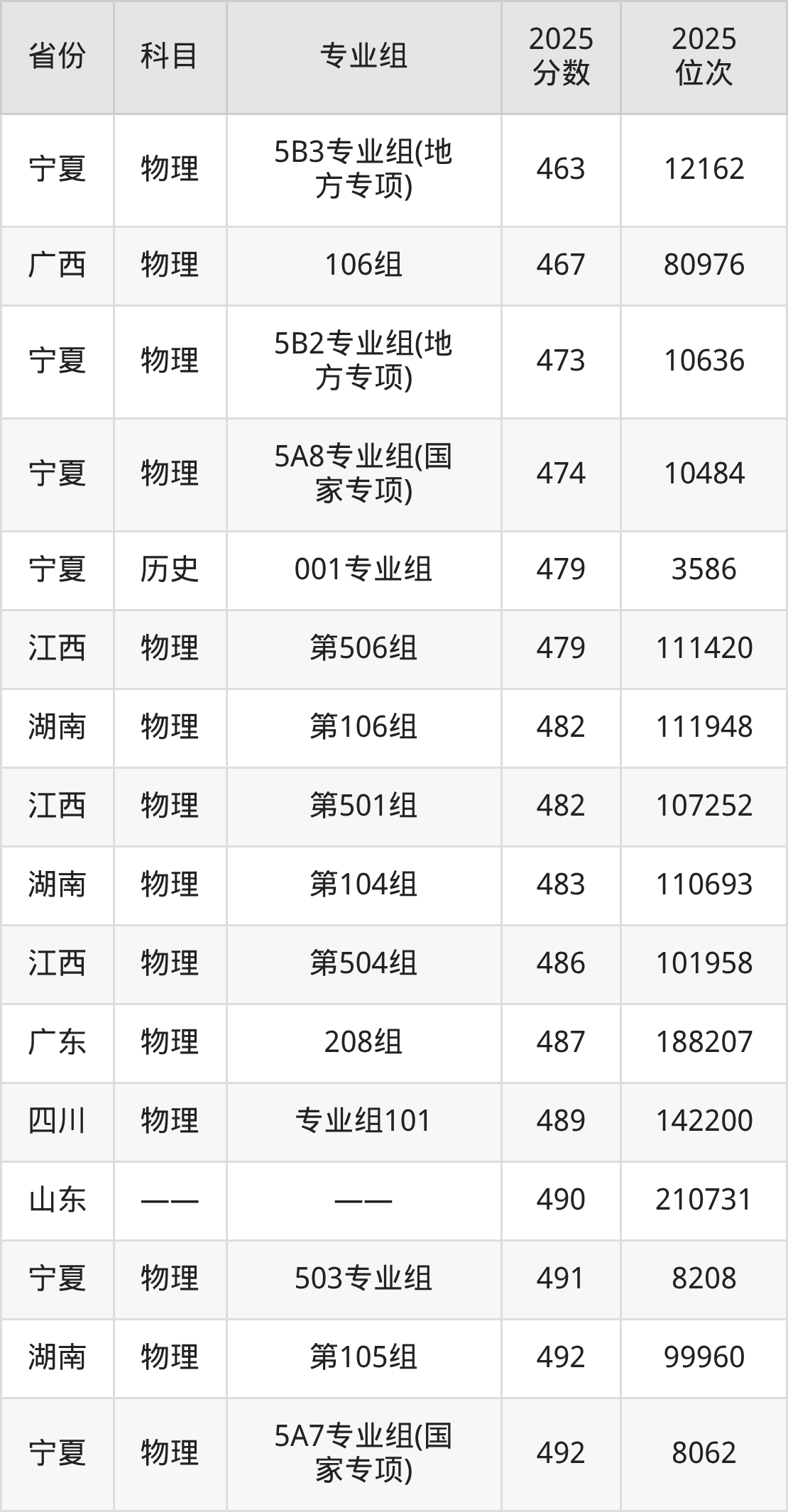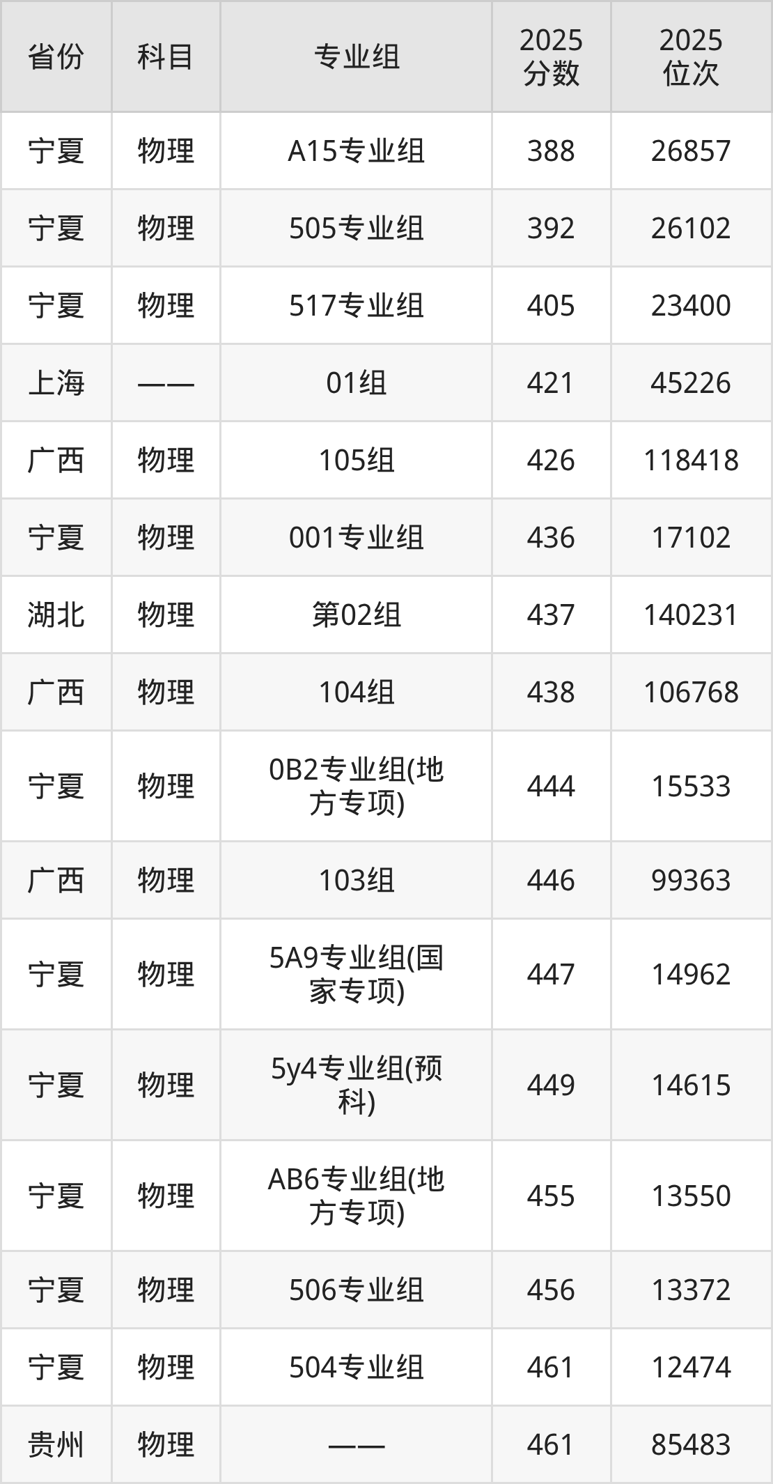 物理类:2025年宁夏医科大学录取最低分是426分(广西),对应的位次排名是118418名。