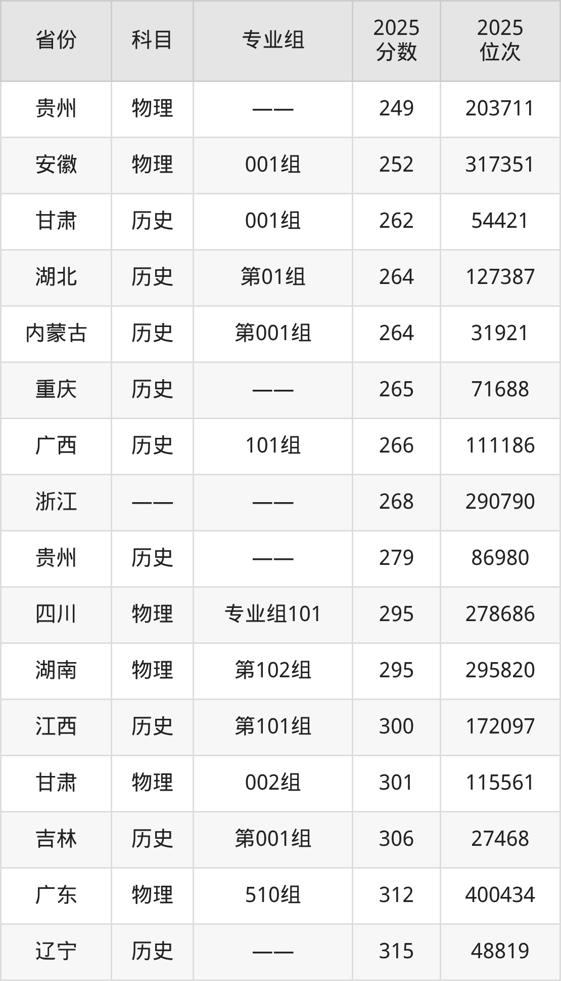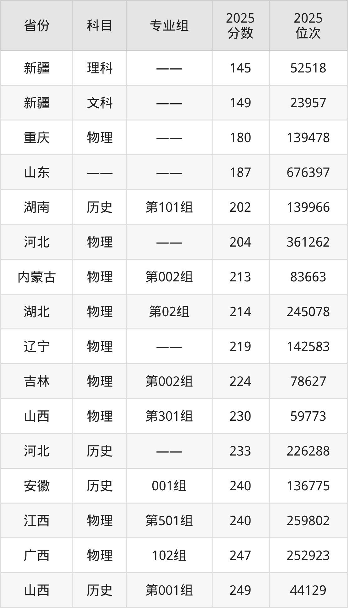 理科:2025年重庆轻工职业学院录取最低分是145分(新疆),对应的位次排名是52518名。