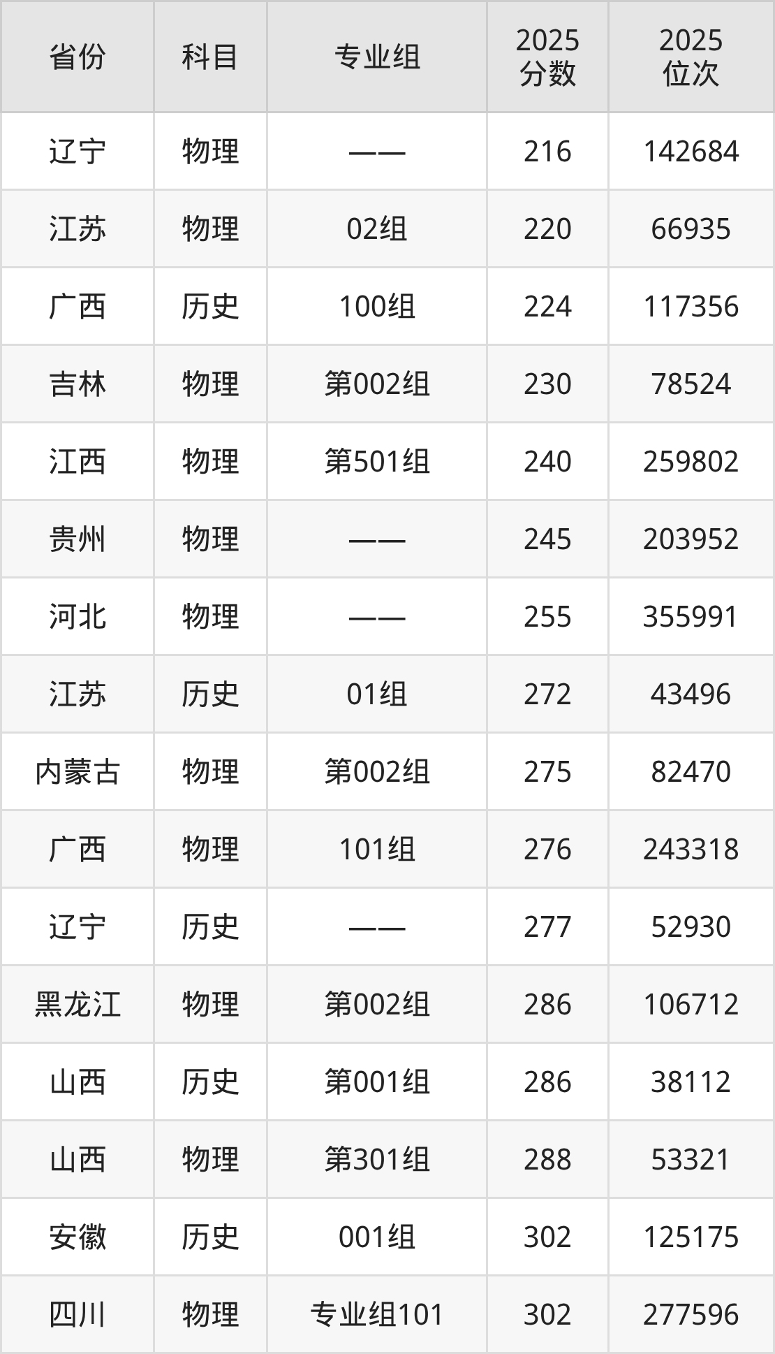物理类:2025年黑龙江生态工程职业学院录取最低分是216分(辽宁),对应的位次排名是142684名。