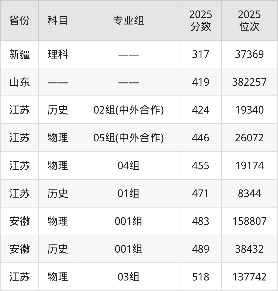 3+3地区:2025年无锡职业技术大学录取最低分是419分(山东),对应的位次排名是382257名。
