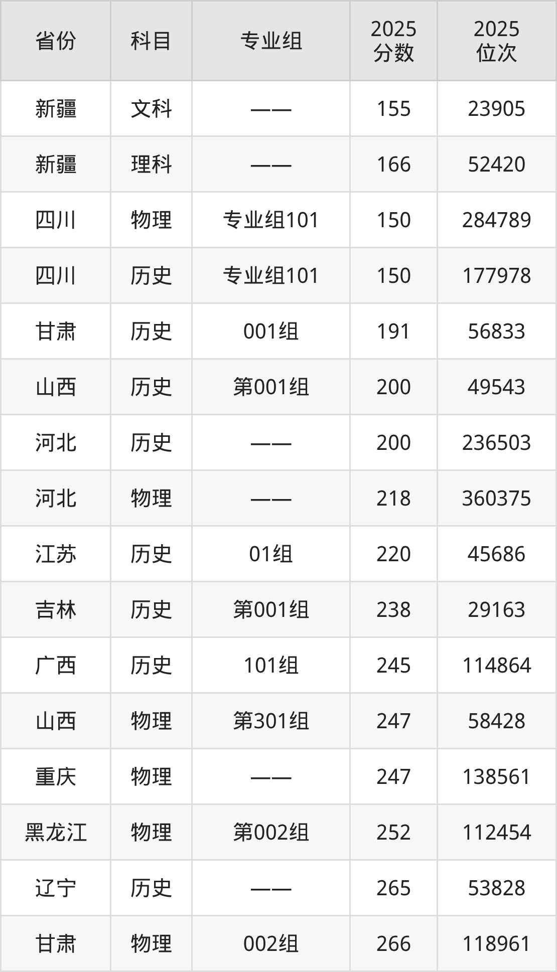 文科:2025年四川科技职业学院录取最低分是155分(新疆),对应的位次排名是23905名。
