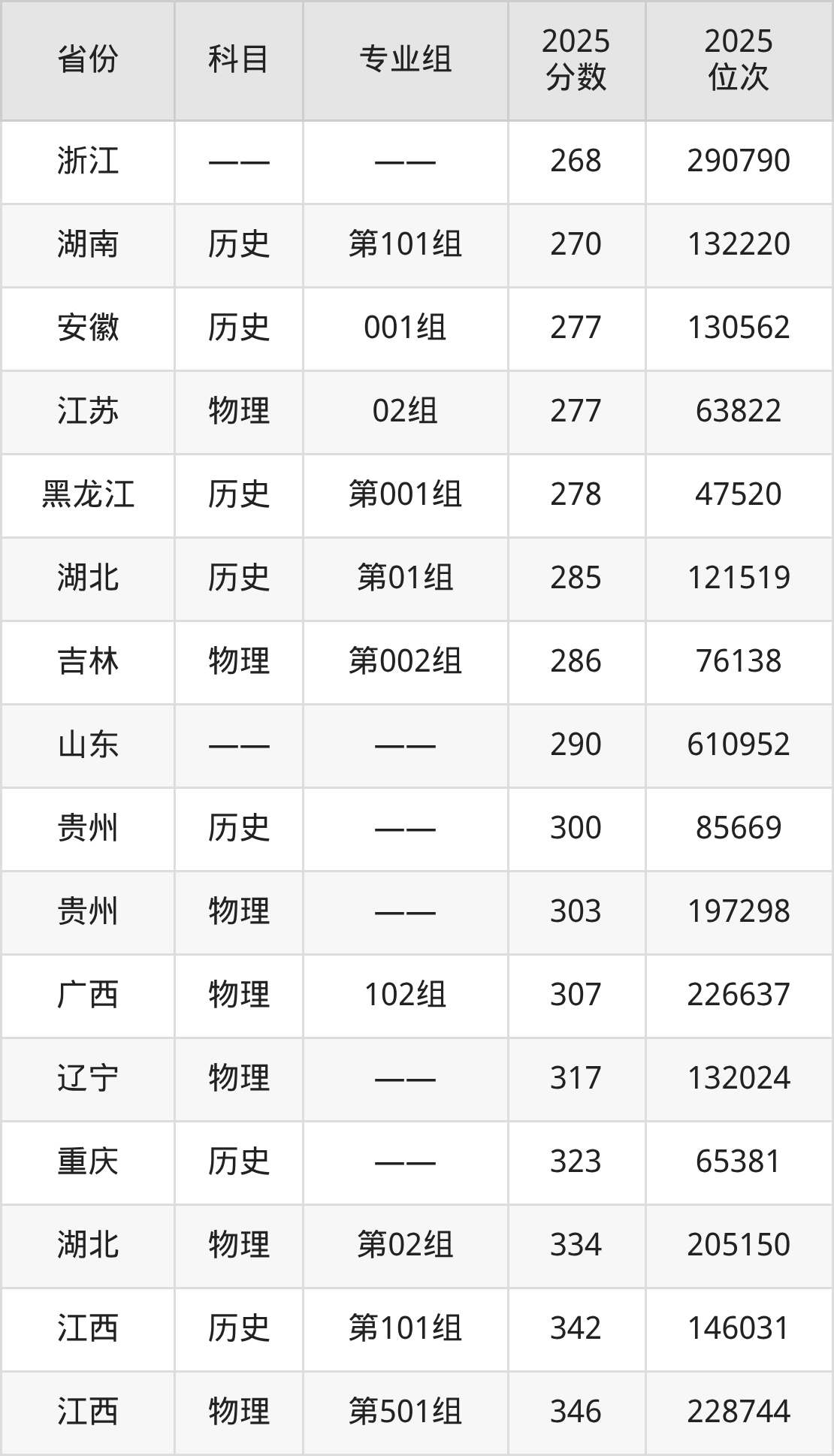 3+3地区:2025年四川科技职业学院录取最低分是268分(浙江),对应的位次排名是290790名。