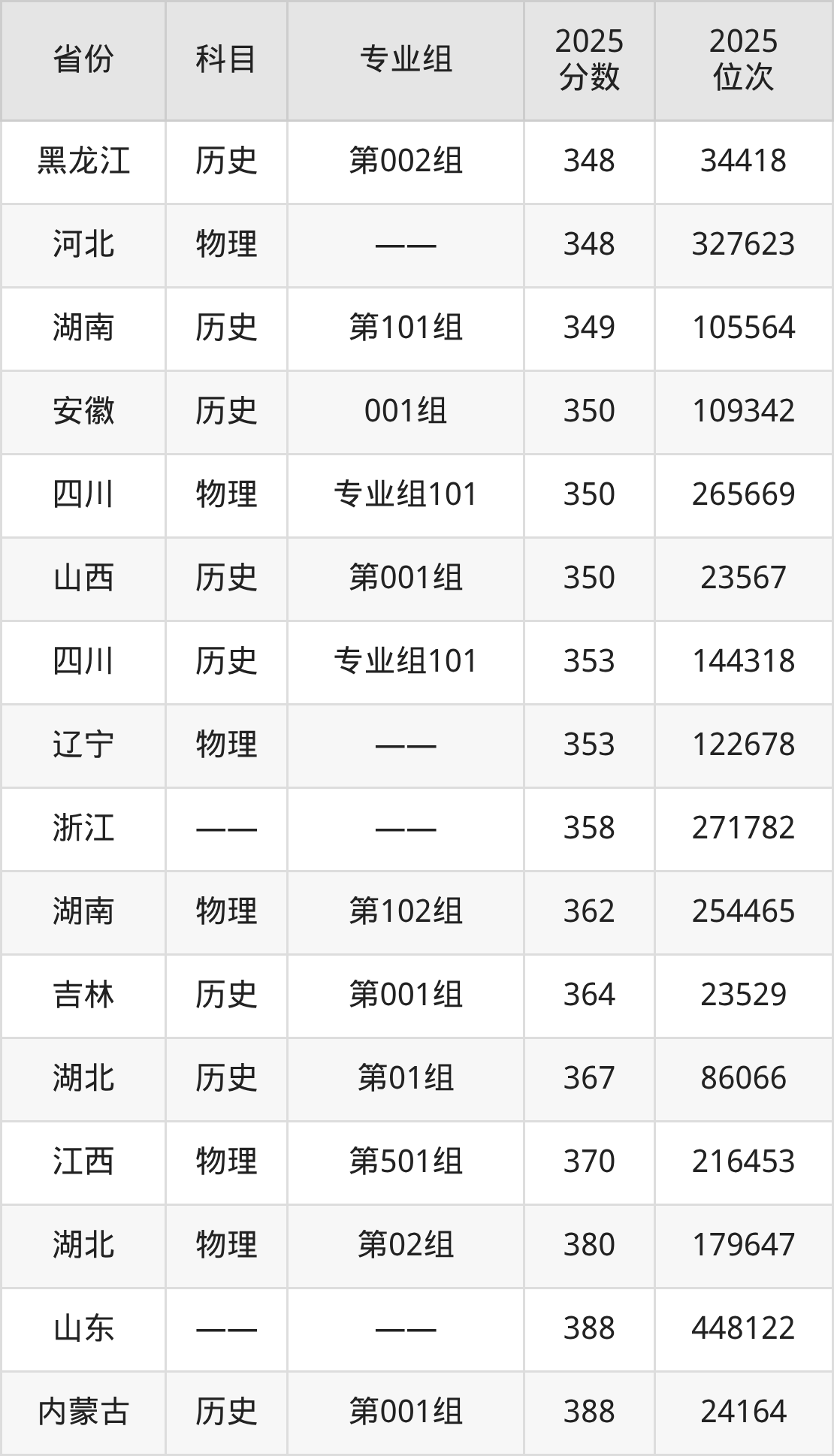 3+3地区:2025年黑龙江职业学院录取最低分是358分(浙江),对应的位次排名是271782名。