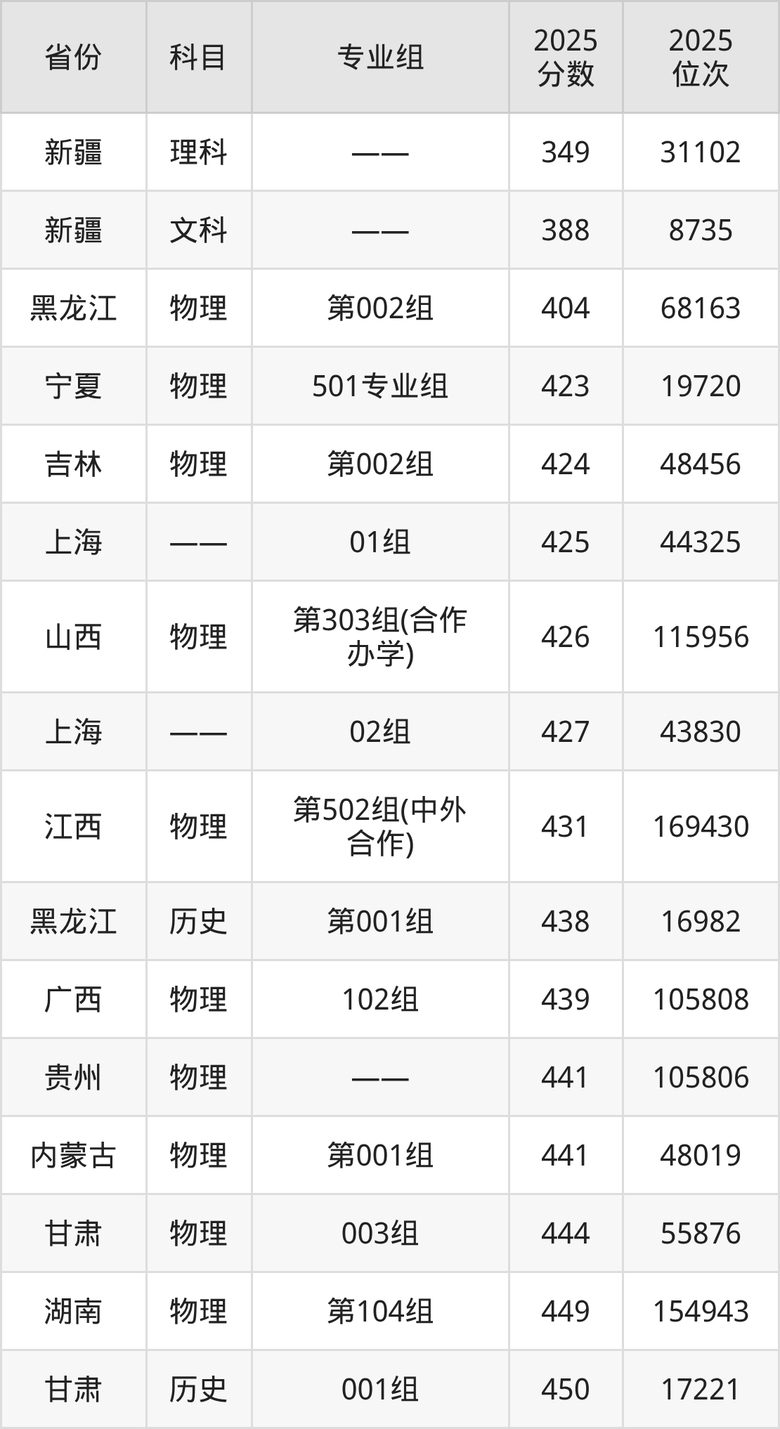2025年安阳工学院全国排名第441位,2025年录取分数线最低349分(位次31102)。本文将展示安阳工学院在各省最低录取分数线汇总,供2026届想要报考该校的考生查阅。