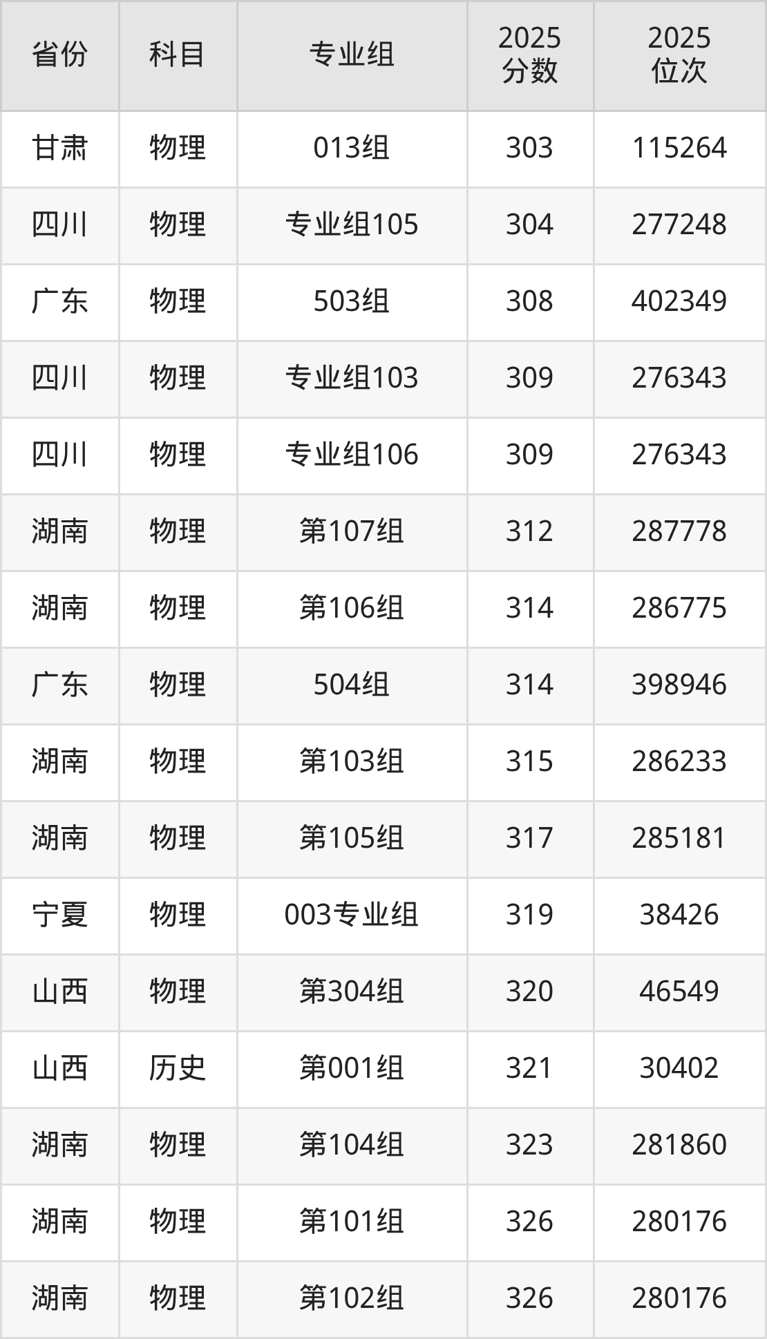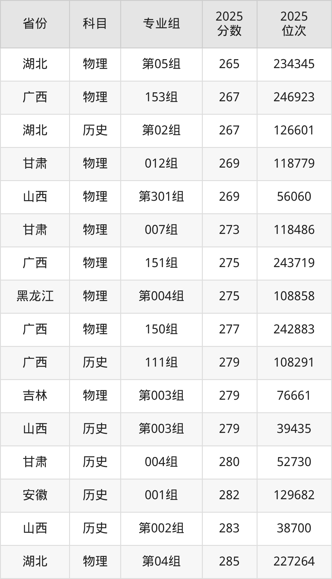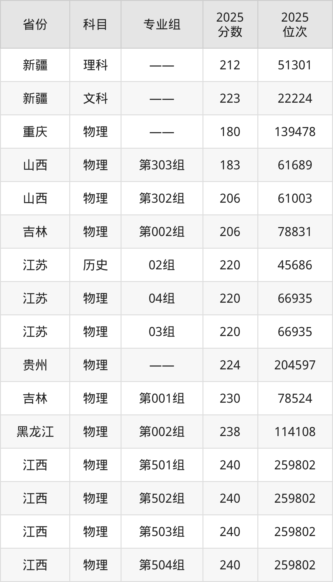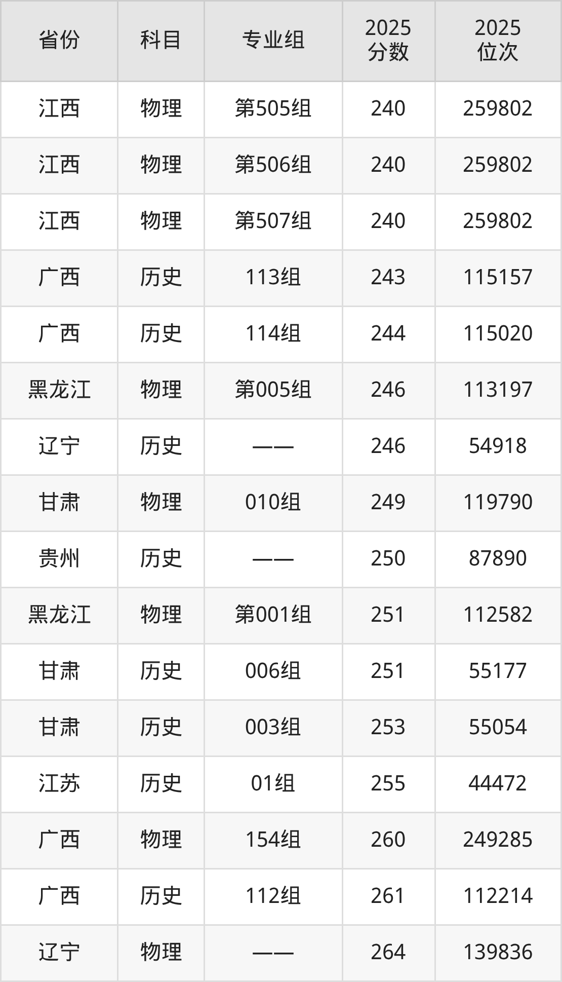 物理类:2025年喀什理工职业技术学院录取最低分是180分(重庆),对应的位次排名是139478名。