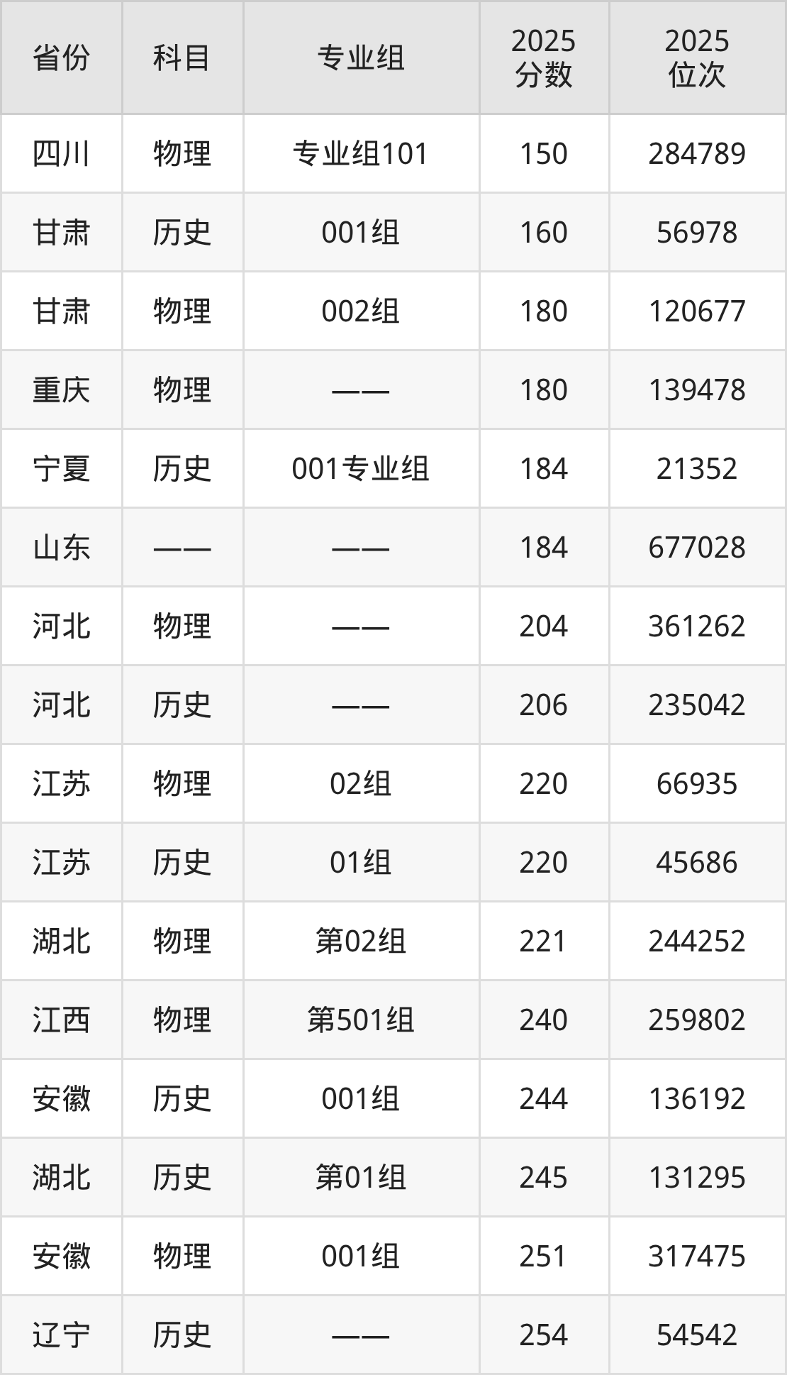 物理类:2025年广西经济职业学院录取最低分是150分(四川),对应的位次排名是284789名。