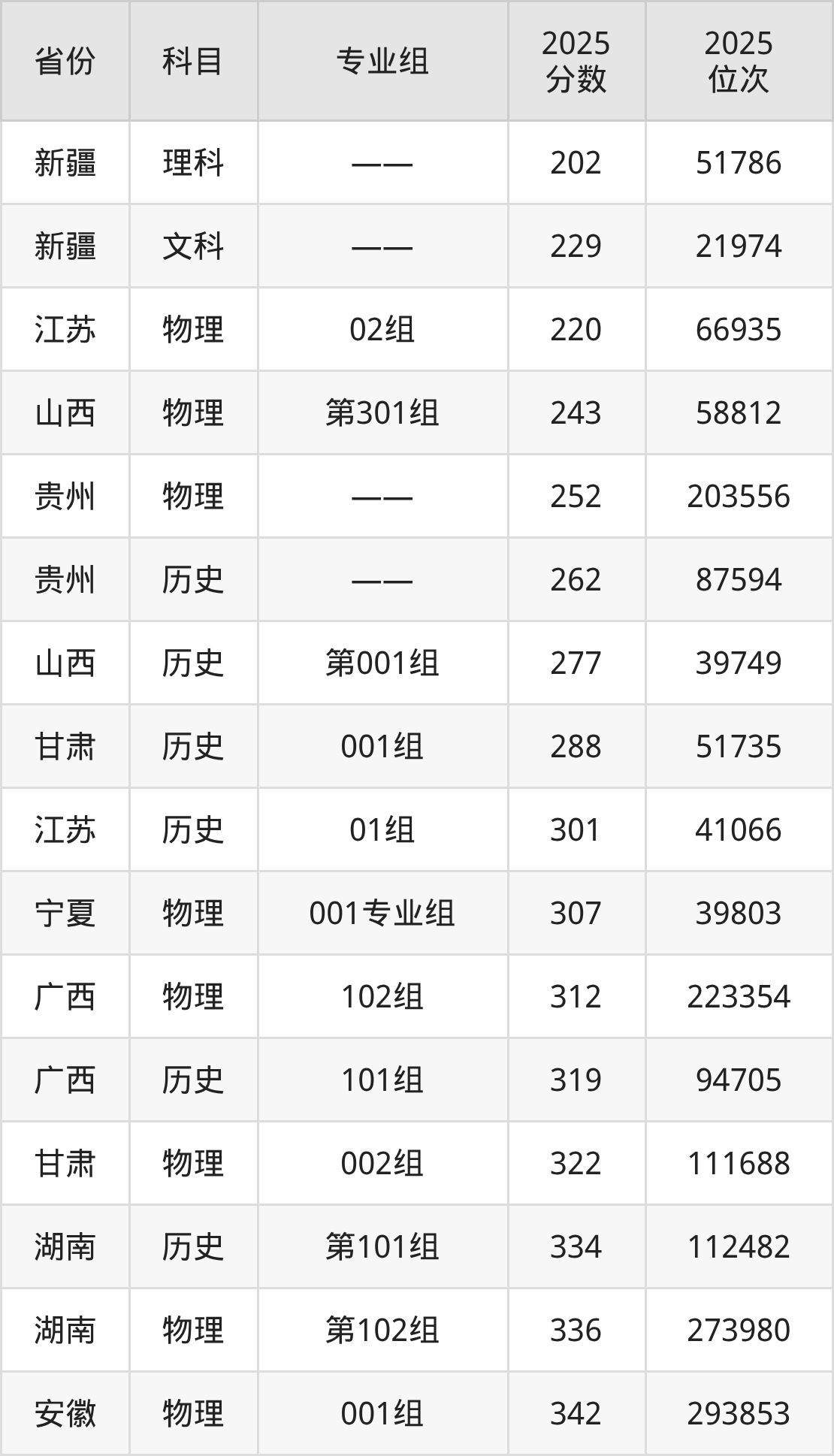 理科:2025年泉州经贸职业技术学院录取最低分是202分(新疆),对应的位次排名是51786名。