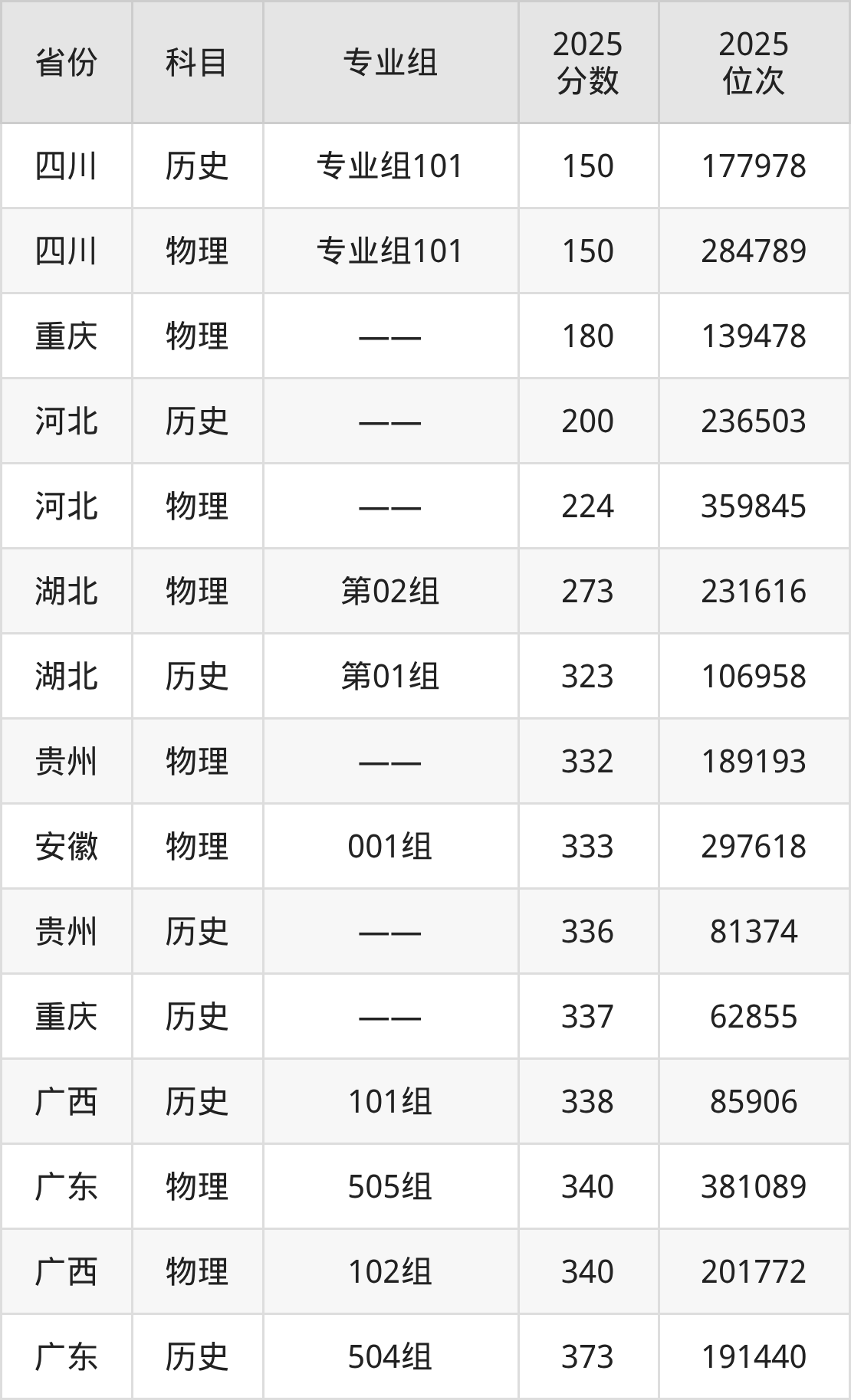 历史类:2025年湖南高尔夫旅游职业学院录取最低分是150分(四川),对应的位次排名是177978名。