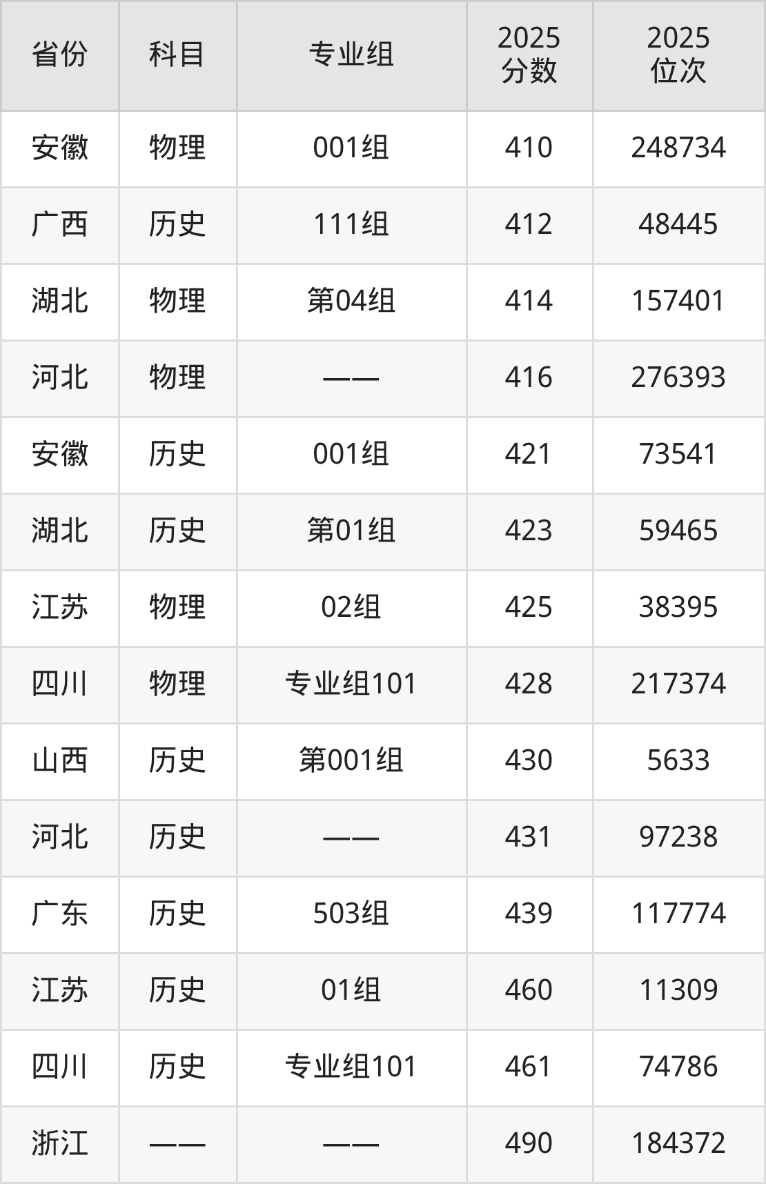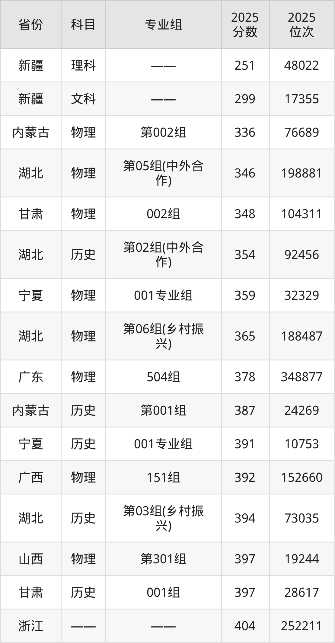 3+3地区:2025年武汉民政职业学院录取最低分是404分(浙江),对应的位次排名是252211名。