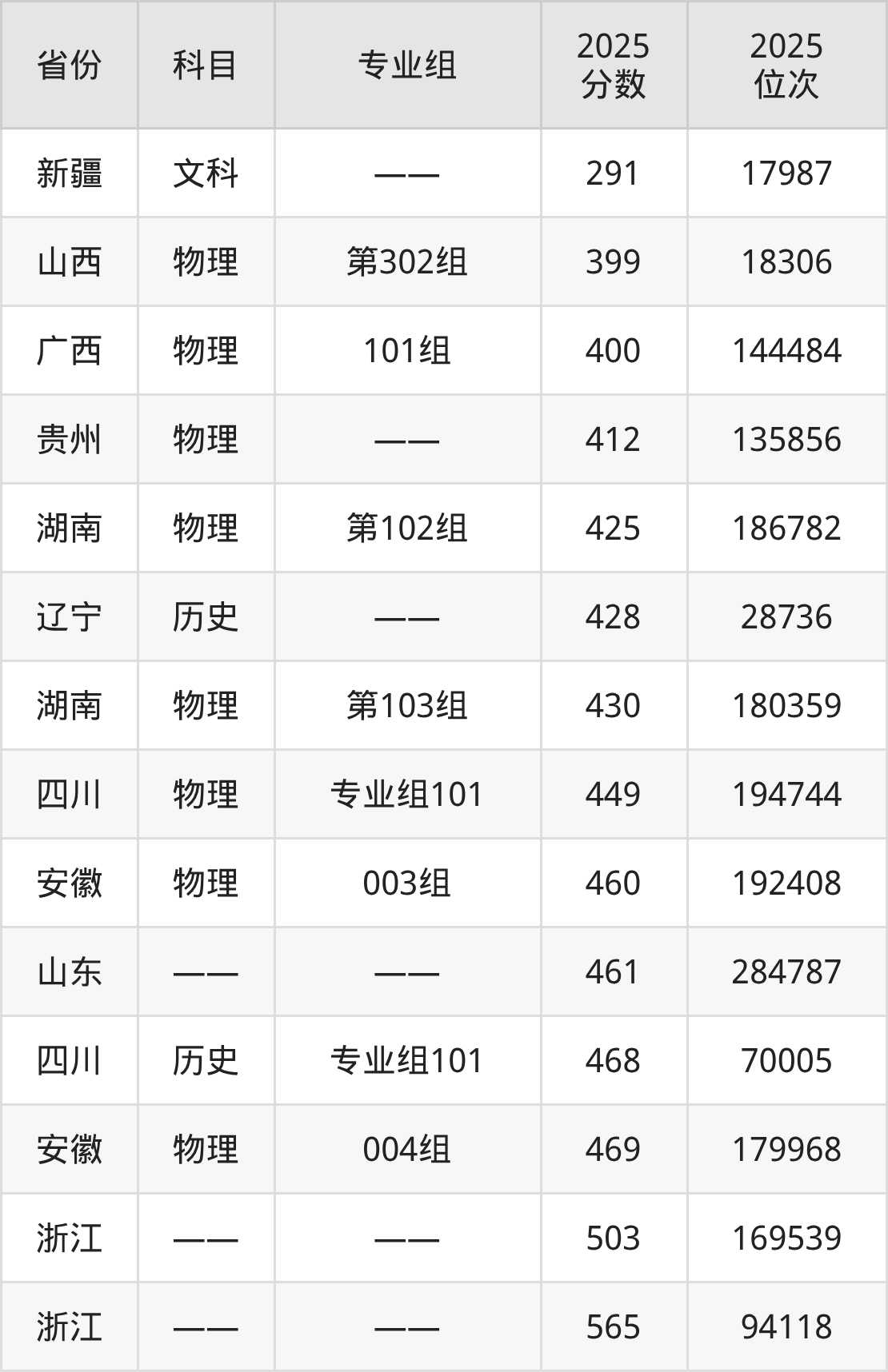 物理类:2025年浙江交通职业技术学院录取最低分是399分(山西),对应的位次排名是18306名。