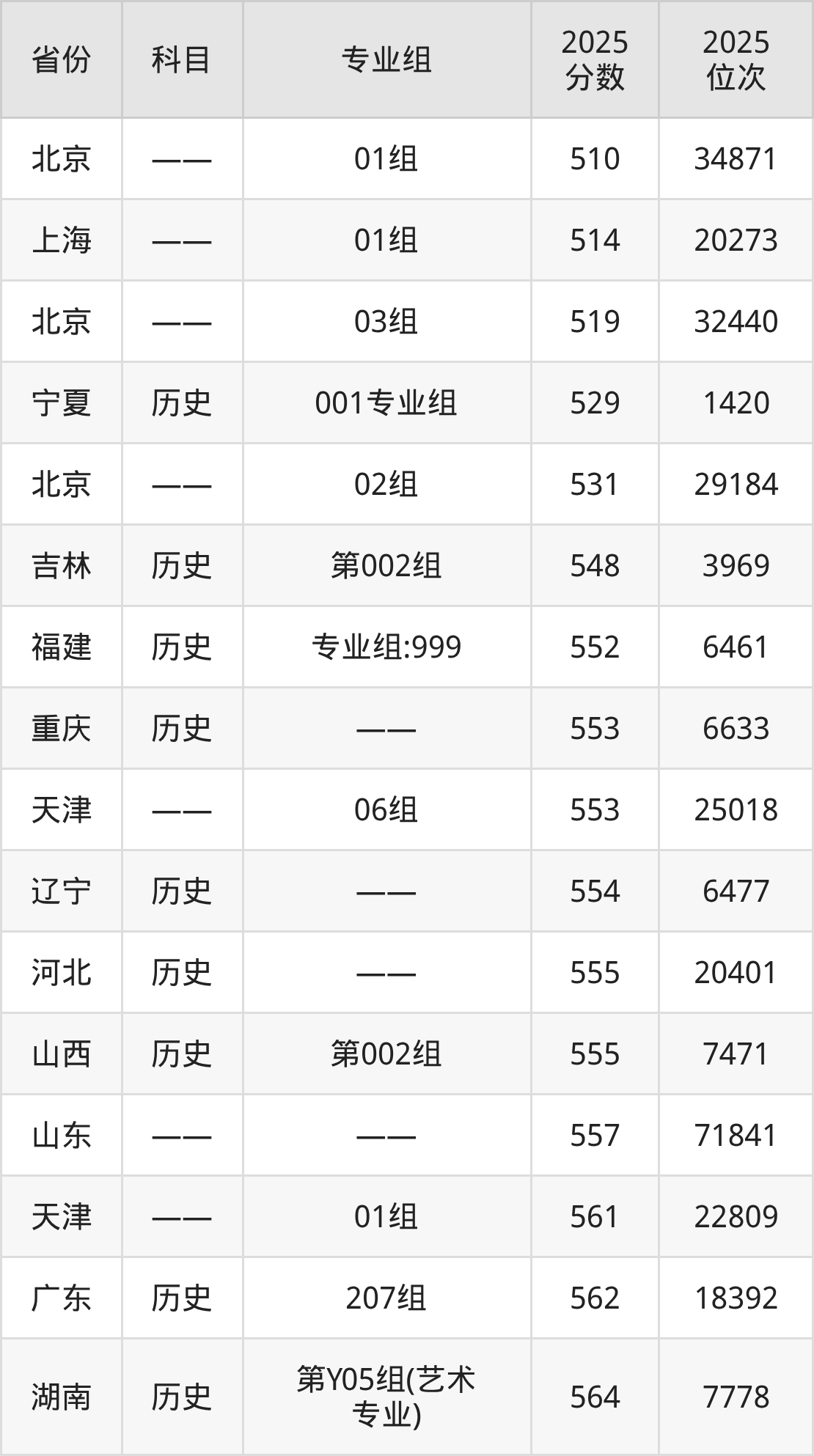 历史类:2025年中国戏曲学院录取最低分是529分(宁夏),对应的位次排名是1420名。