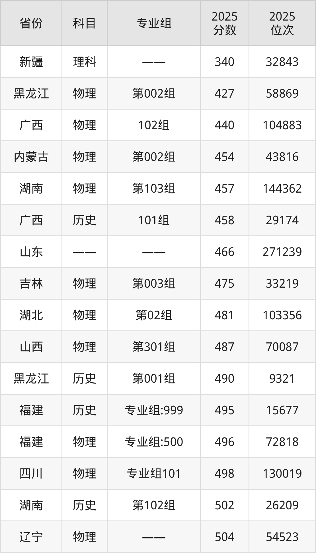 理科:2025年安阳师范学院录取最低分是340分(新疆),对应的位次排名是32843名。