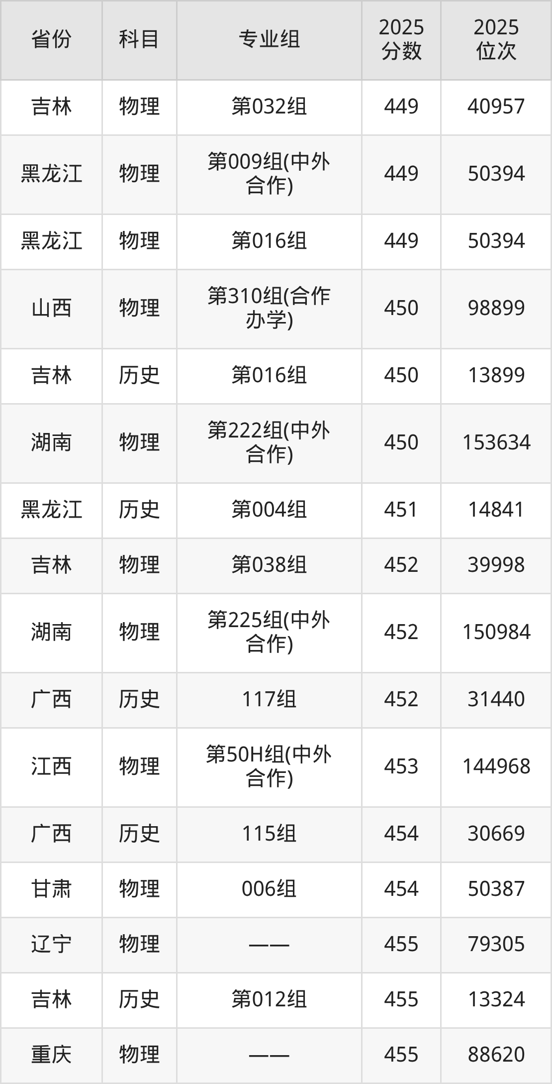 3+3地区:2025年长春大学录取最低分是467分(北京),对应的位次排名是46071名。