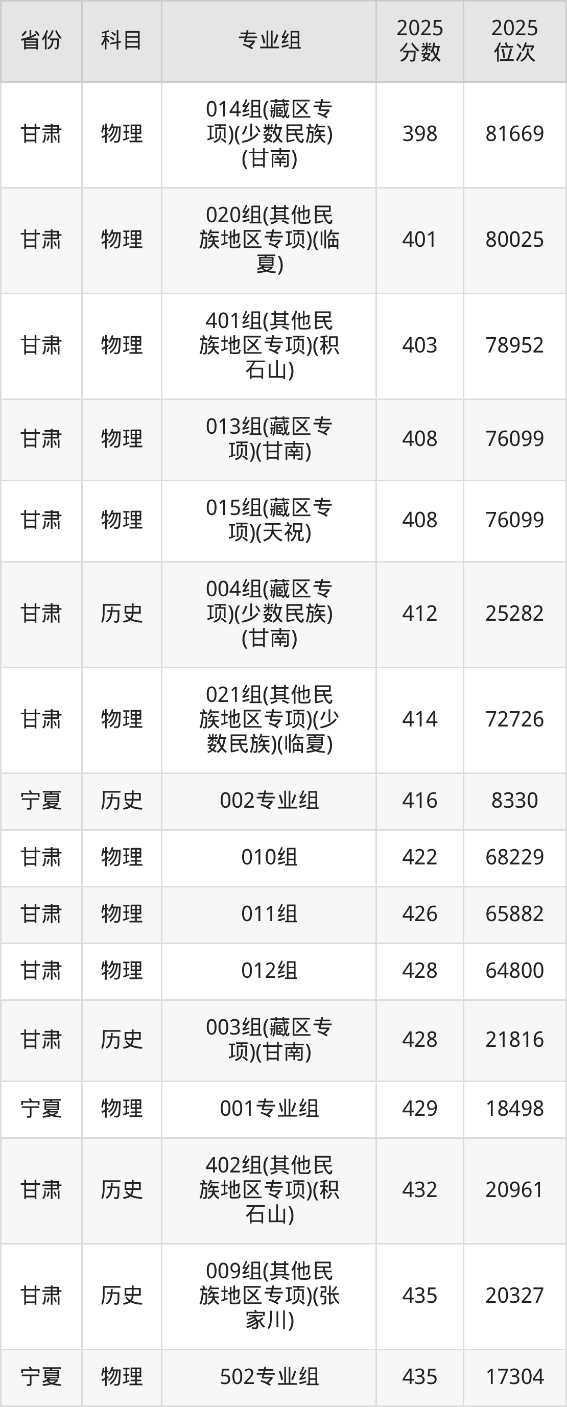 3、招生批次:本科批C段、高职专科批(甘肃省)