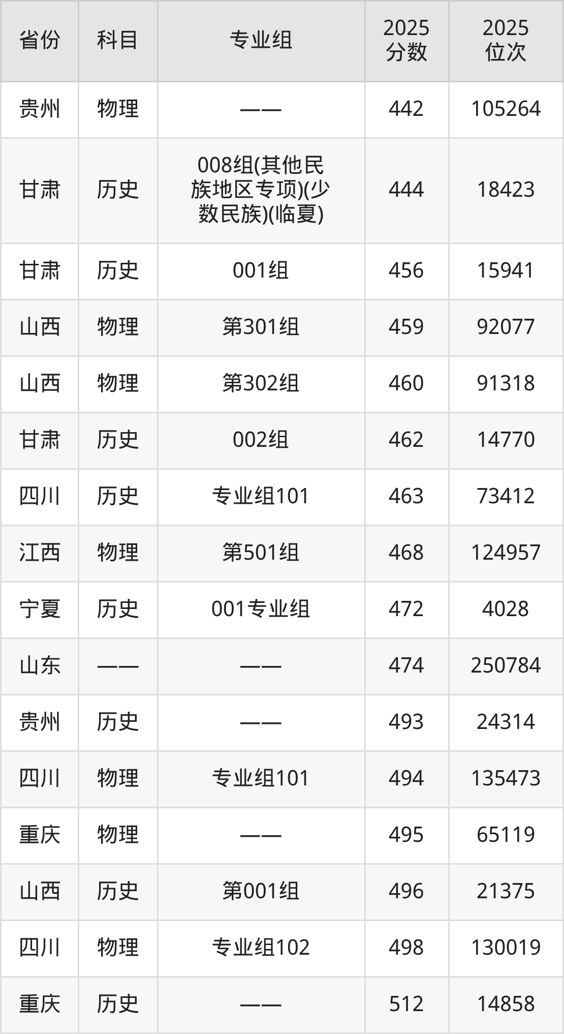 3+3地区:2025年陇南师范学院录取最低分是474分(山东),对应的位次排名是250784名。