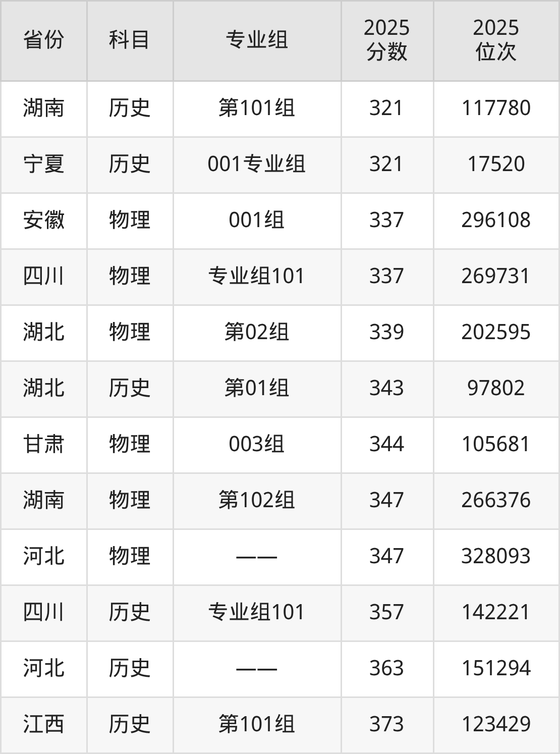3+3地区:2025年塔里木职业技术学院录取最低分是270分(山东),对应的位次排名是631325名。