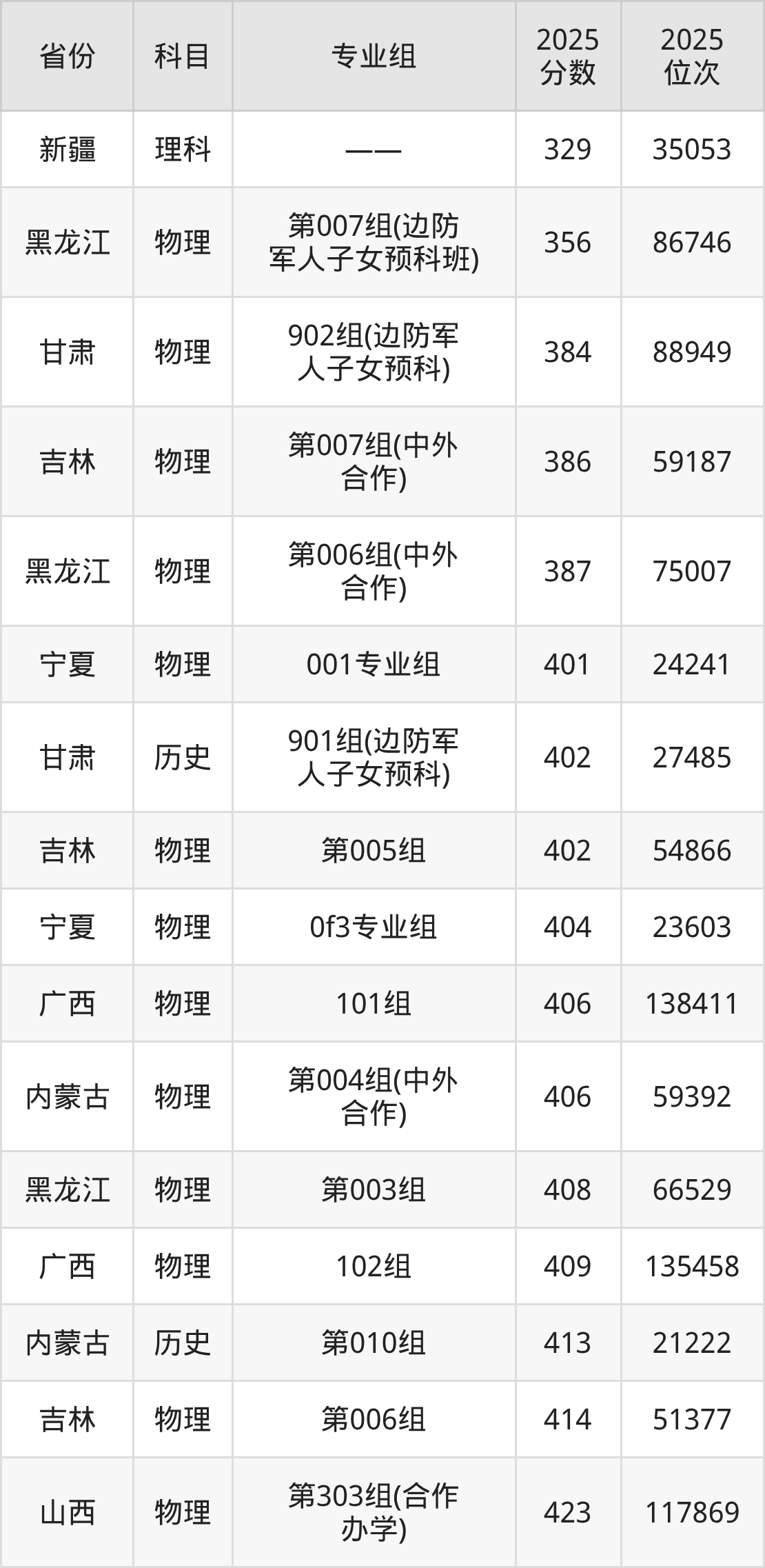 理科:2025年长春工程学院录取最低分是329分(新疆),对应的位次排名是35053名。