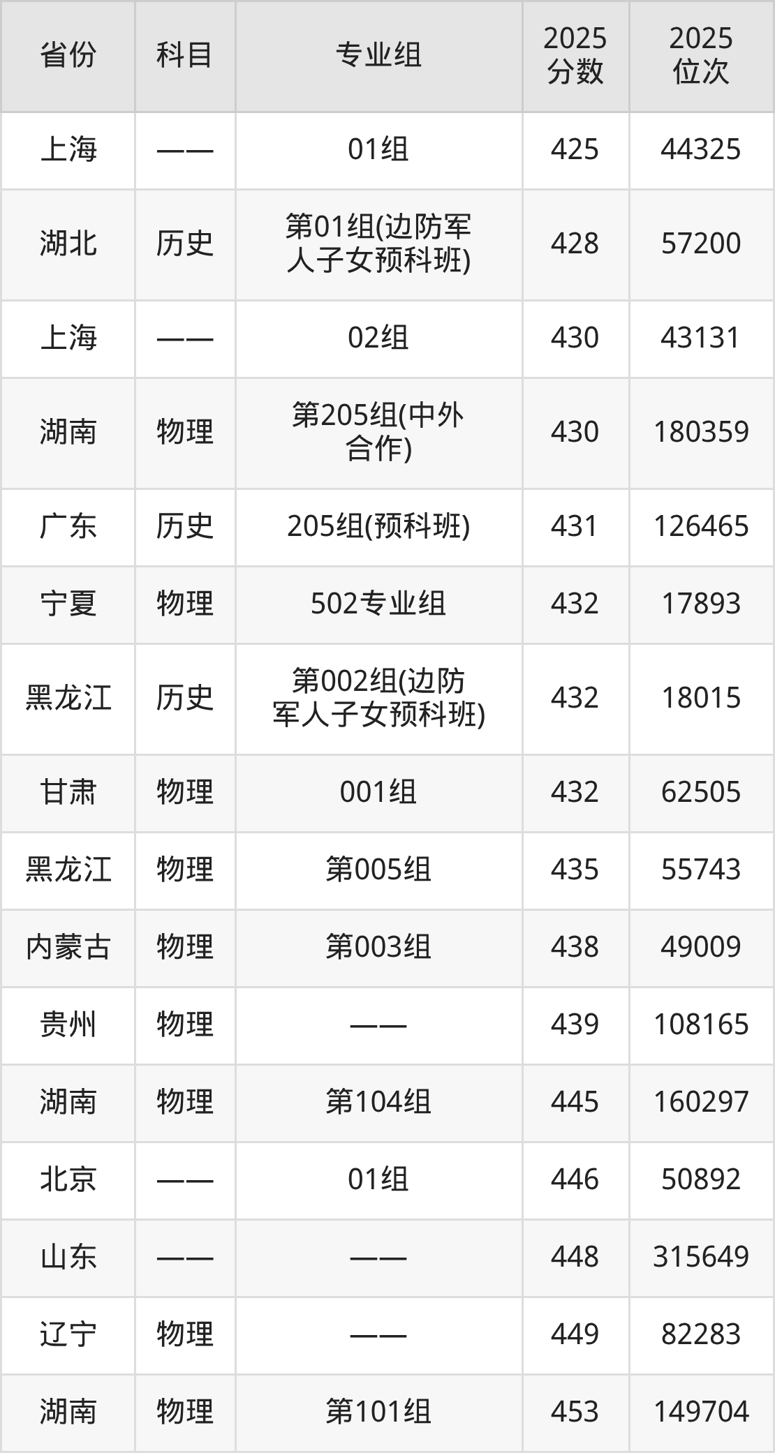 3+3地区:2025年长春工程学院录取最低分是425分(上海),对应的位次排名是44325名。
