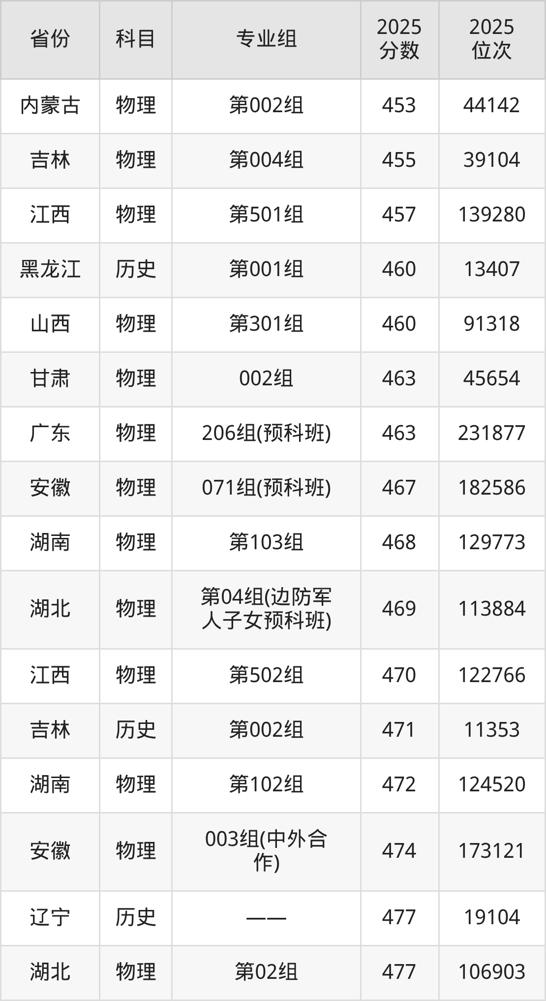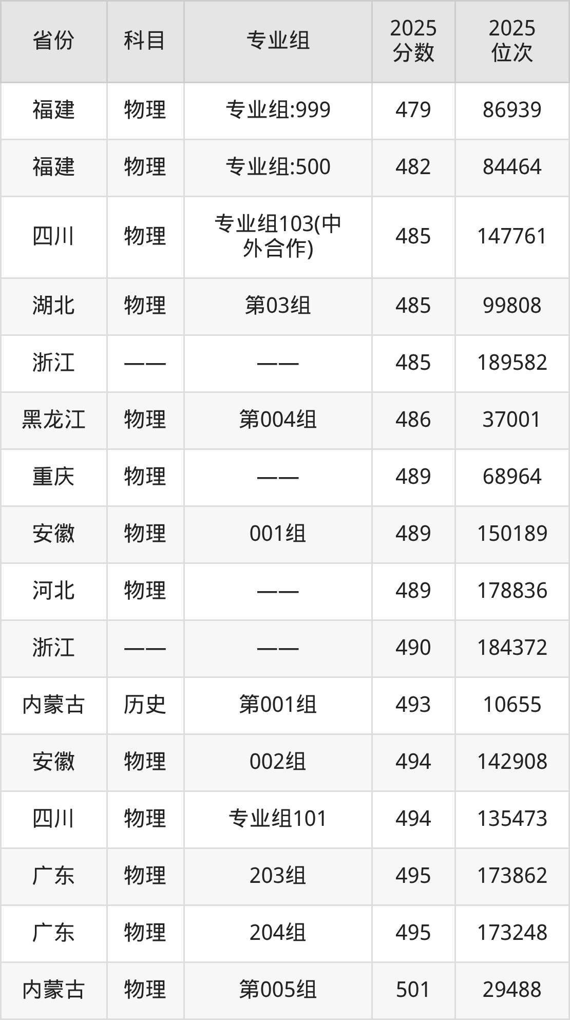 历史类:2025年长春工程学院录取最低分是402分(甘肃),对应的位次排名是27485名。
