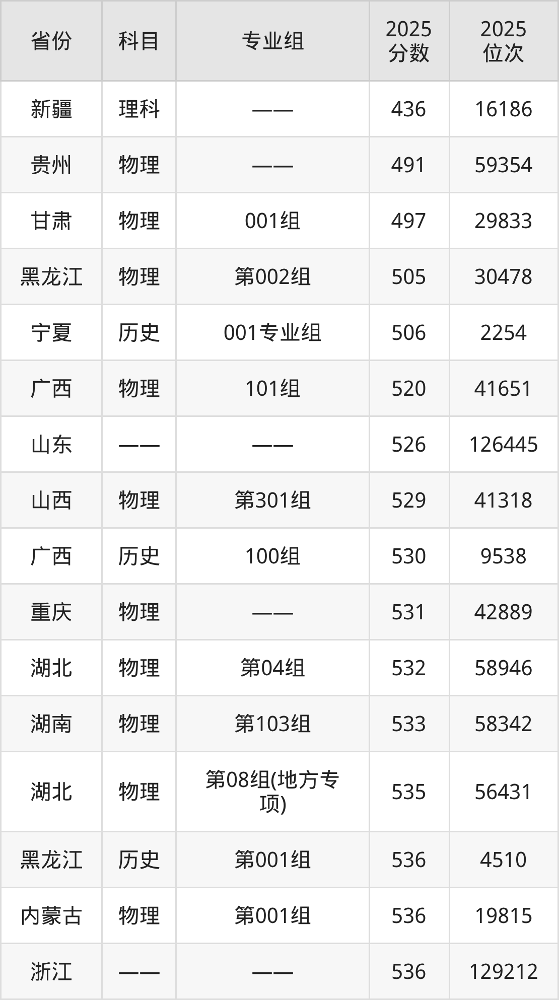 2025年武汉纺织大学全国排名第127位,2025年录取分数线最低436分(位次16186)。本文将展示武汉纺织大学在各省最低录取分数线汇总,供2026届想要报考该校的考生查阅。