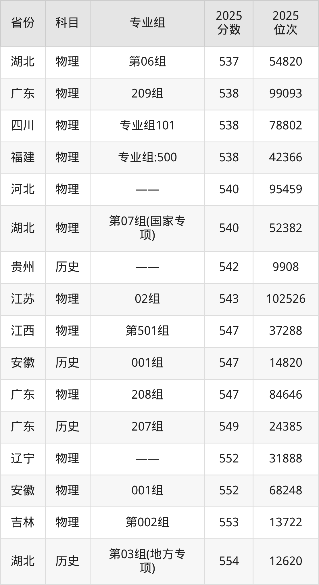 物理类:2025年武汉纺织大学省内录取最低分是532分,对应的位次排名是58946名。建议:如果2026年排名超过58946名,那么被该校录取的概率较大。
