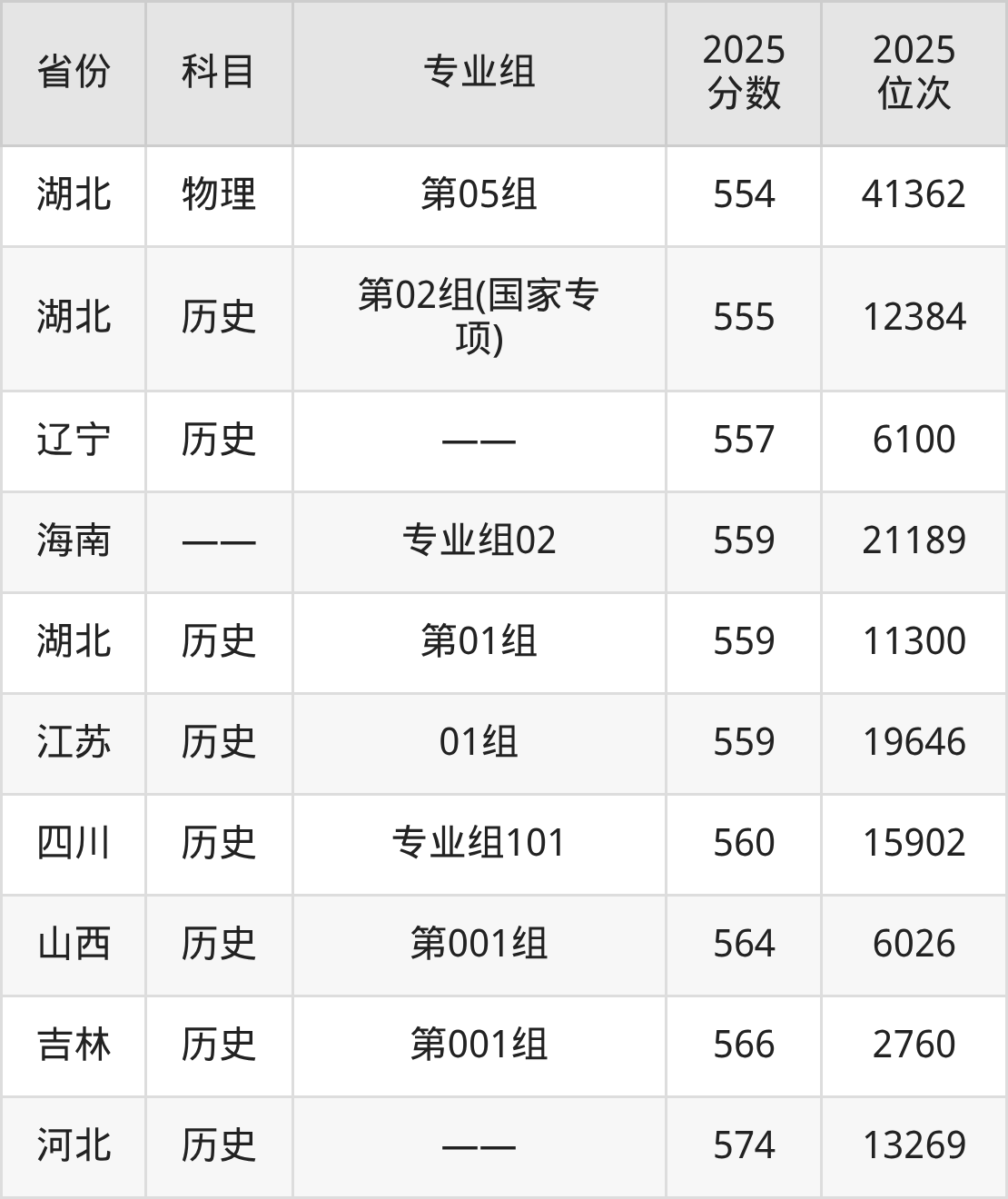 历史类:2025年武汉纺织大学省内录取最低分是554分,对应的位次排名是12620名。建议:如果2026年排名超过12620名,那么被该校录取的概率较大。
