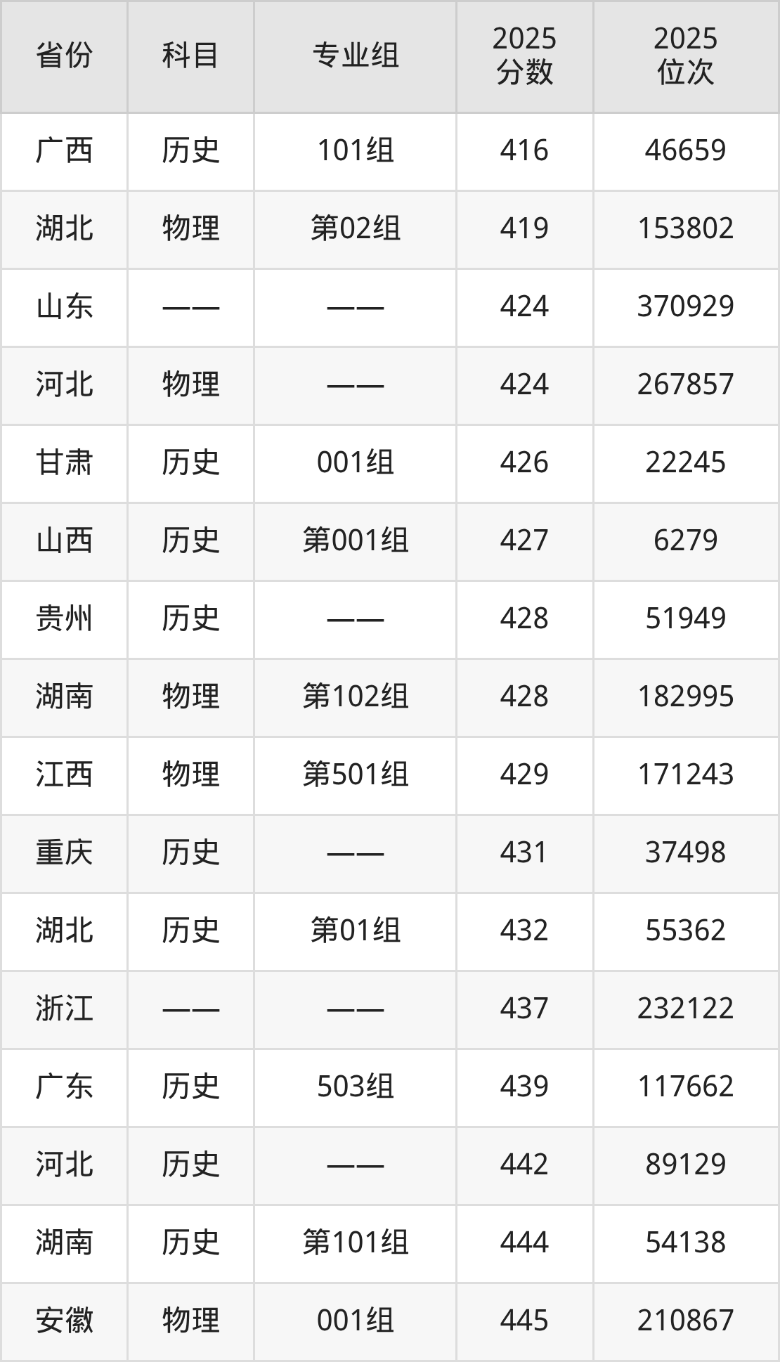 3+3地区:2025年江苏农牧科技职业学院录取最低分是424分(山东),对应的位次排名是370929名。