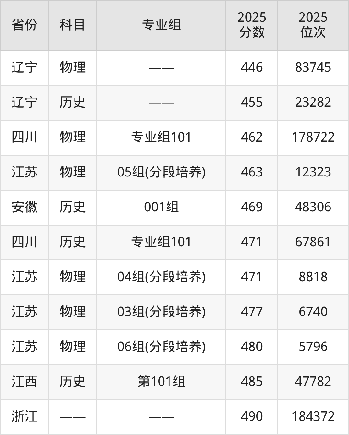 历史类:2025年江苏农牧科技职业学院省内录取最低分是383分,对应的位次排名是28447名。建议:如果2026年排名超过28447名,那么被该校录取的概率较大。