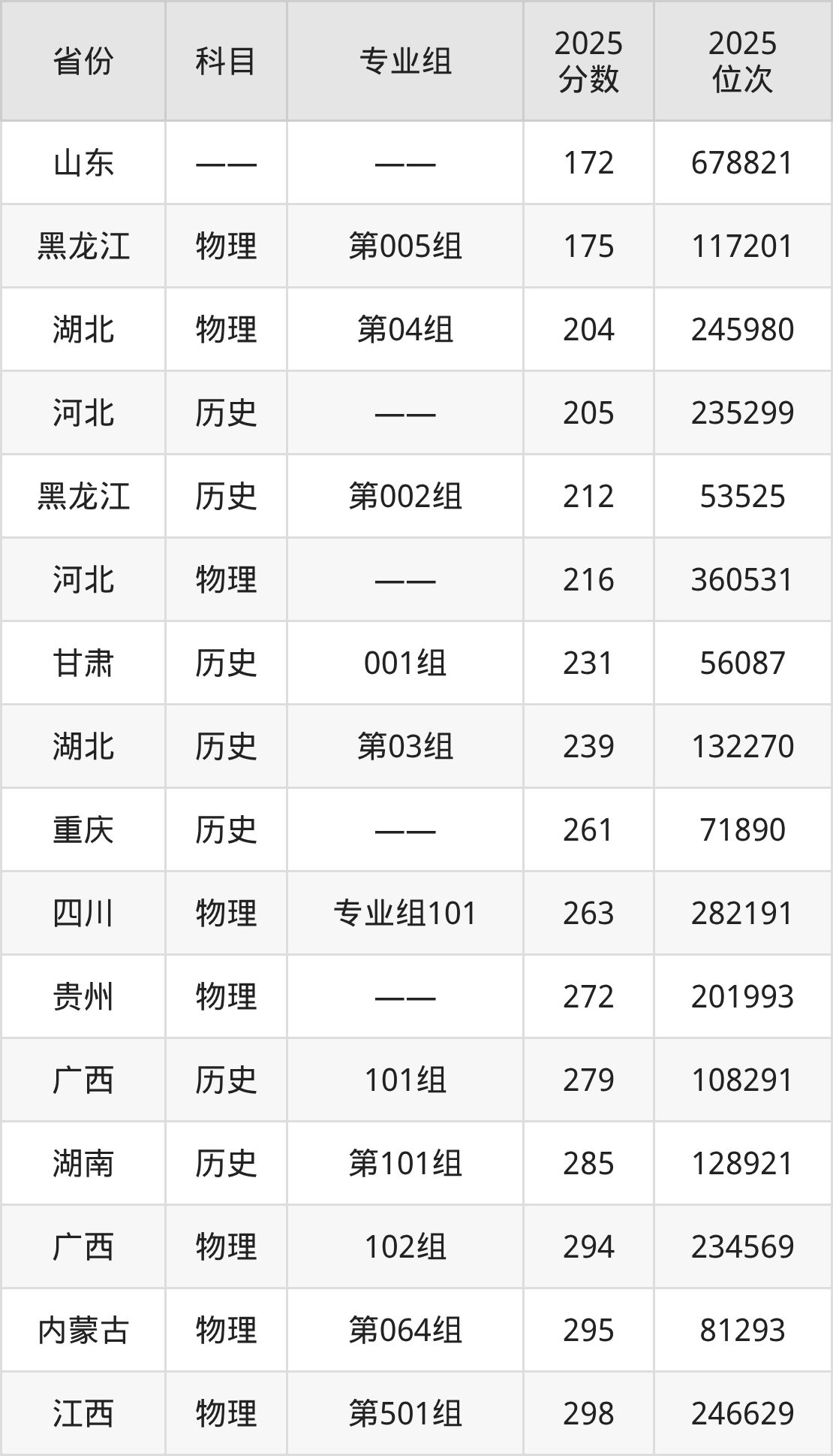2025年泉州海洋职业学院全国排名第28位,2025年录取分数线最低172分(位次678821)。本文将展示泉州海洋职业学院在各省最低录取分数线汇总,供2026届想要报考该校的考生查阅。