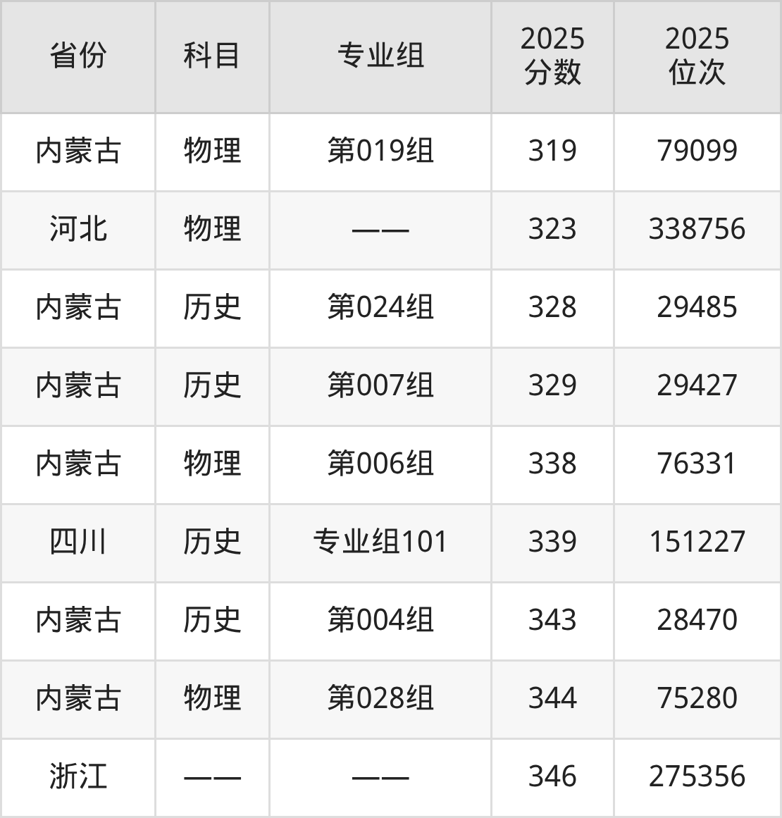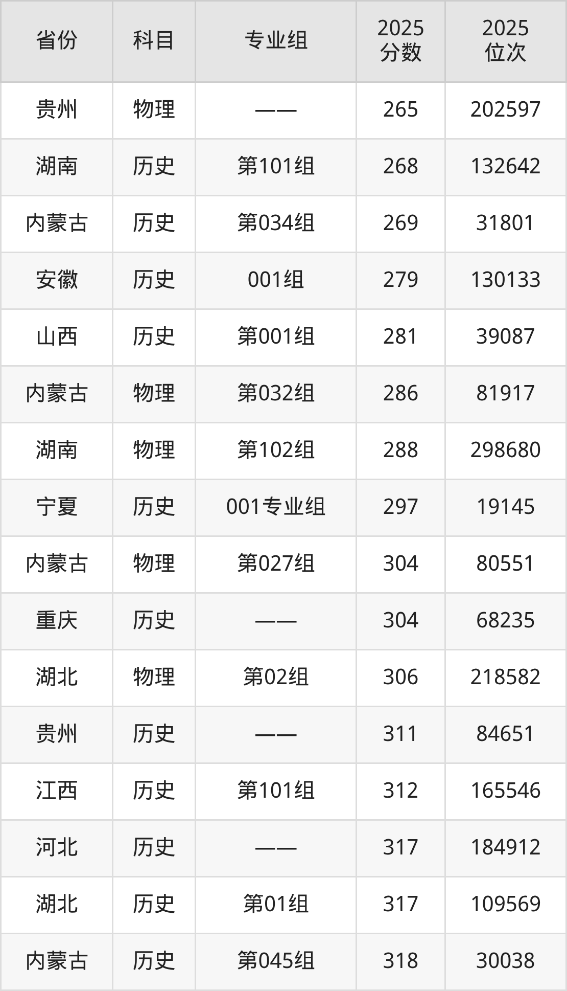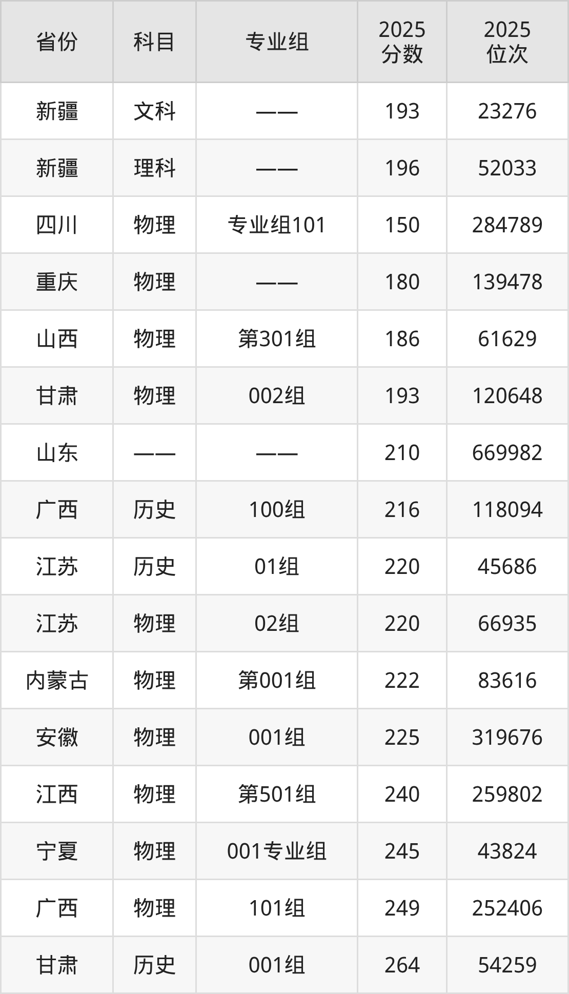 物理类:2025年吐鲁番职业技术学院录取最低分是150分(四川),对应的位次排名是284789名。