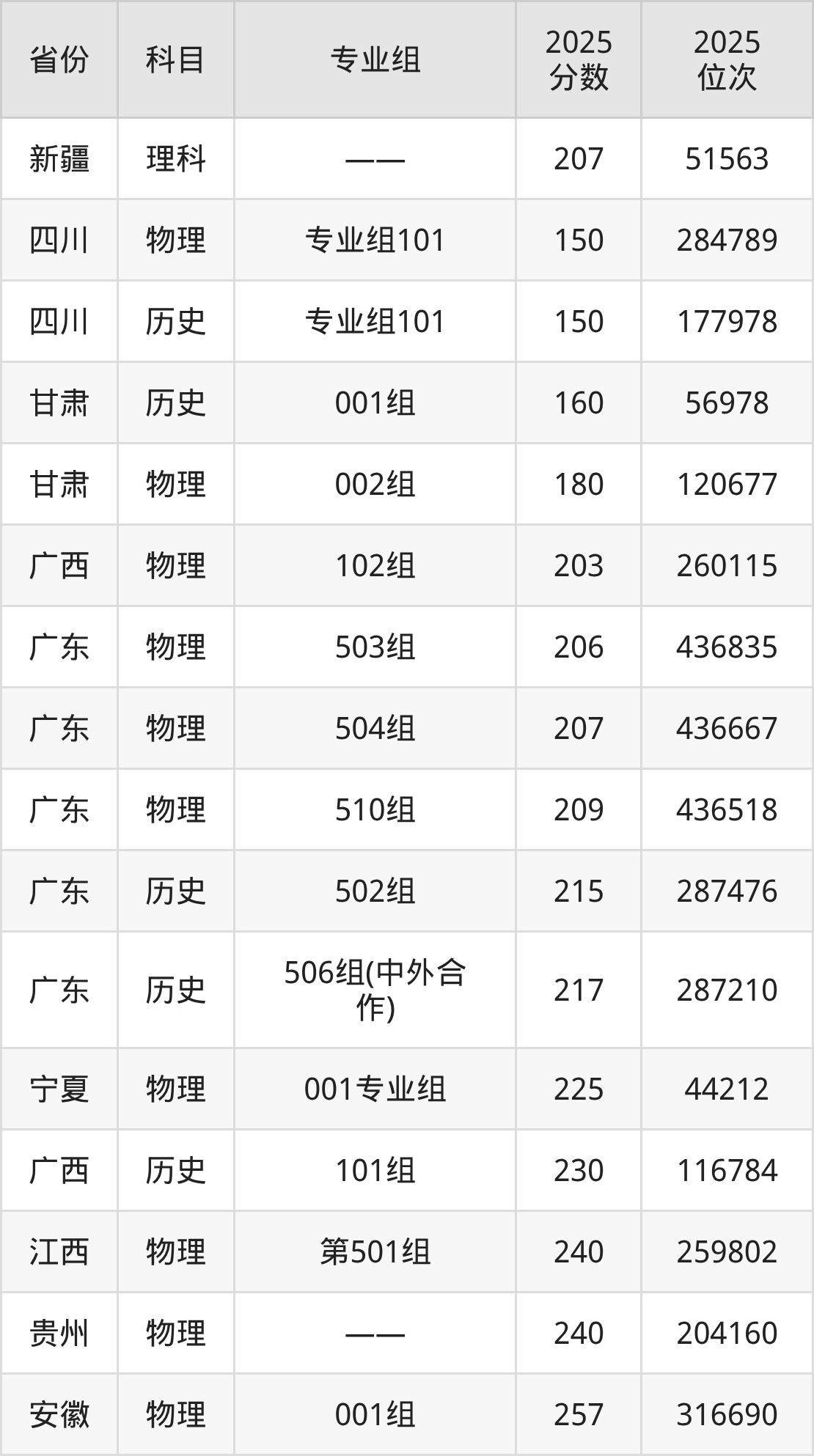 物理类:2025年广州东华职业学院录取最低分是150分(四川),对应的位次排名是284789名。