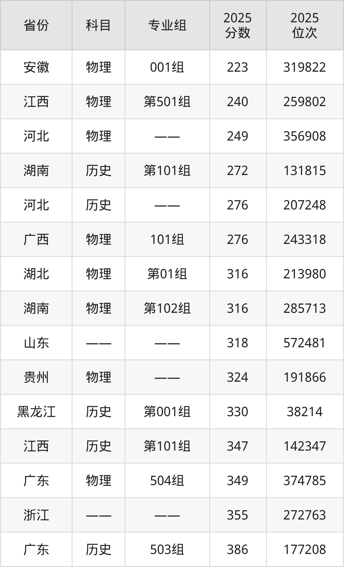 物理类:2025年漳州理工职业学院录取最低分是223分(安徽),对应的位次排名是319822名。
