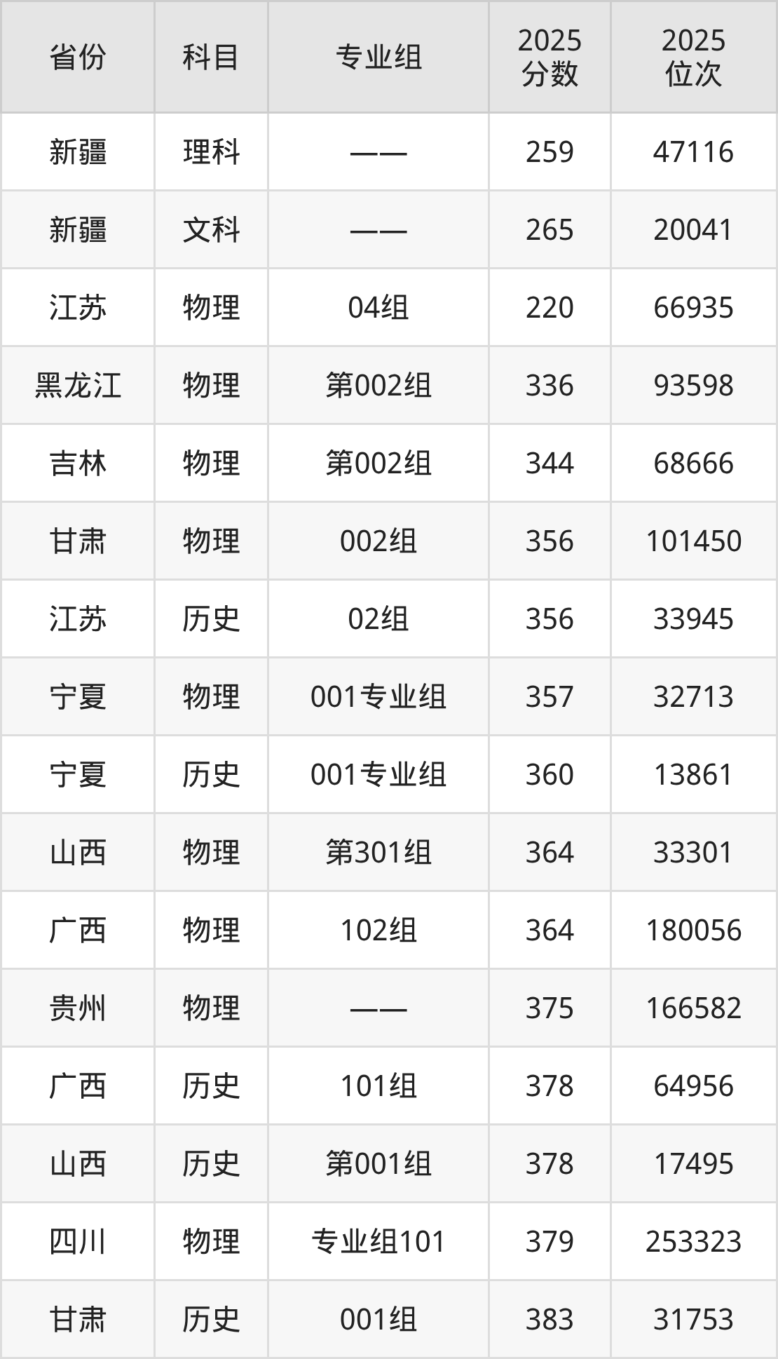 理科:2025年镇江市高等专科学校录取最低分是259分(新疆),对应的位次排名是47116名。